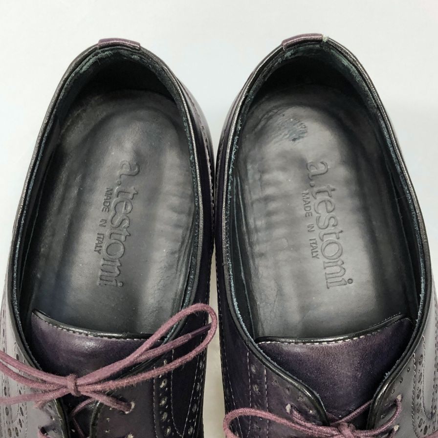 ブランド | ア テストーニ レザーシューズ パンチド ウィングチップ メンズ パープル サイズ7 a.testoni |
