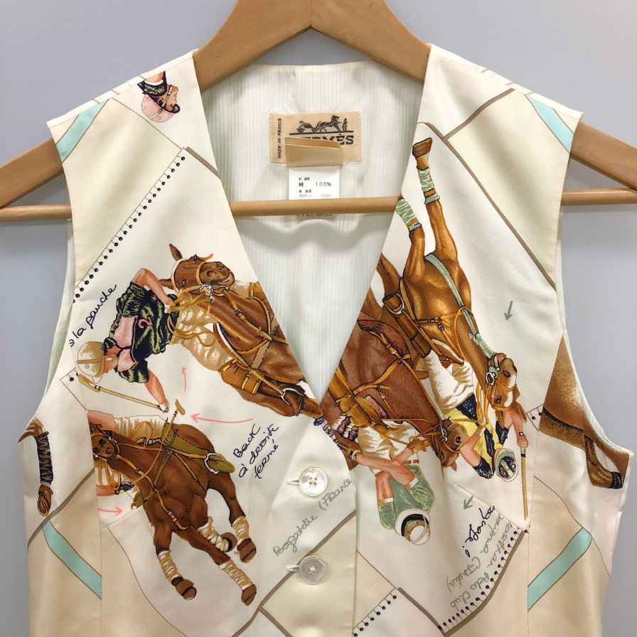 中古◆エルメス ベスト スカーフ 総柄 ジレ デザイン マルジェラ期 90s 90年代 ホワイト レディース サイズ38 HEMRES 【AFB8】