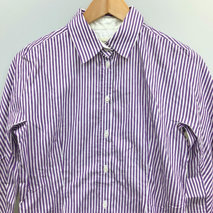 美品◆ウィークエンド マックスマーラ シャツ ストライプ コットン 長袖 ドレスシャツ パープル レディース サイズ38 WEEKEND MaxMara 【AFB34】