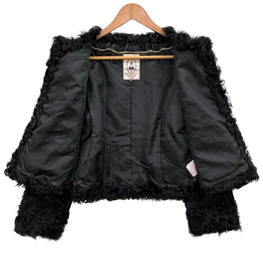 極美品◆ルールロジェット ファー ボレロ ジャケット ラムファー ビジューあしらい 日本製 レディース サイズ1 ブラック leur logette 【AFB32】