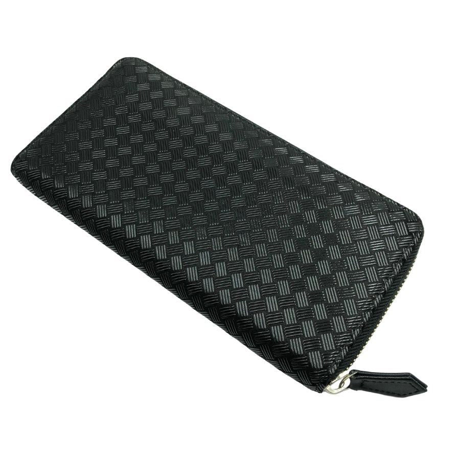 印傳屋 長財布 ラウンドジップ 網代編柄 ブラック メンズ INDEN-YA【AFI19】