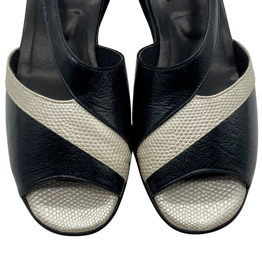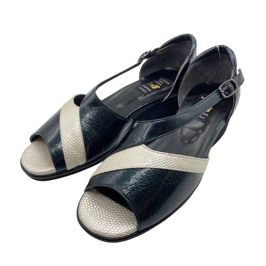 新宿屋 レザーサンダル レザー×リザード 2040-405 ブルー×ホワイト 24.0cm レディース shinjukuya 約24.0cm【7-6】