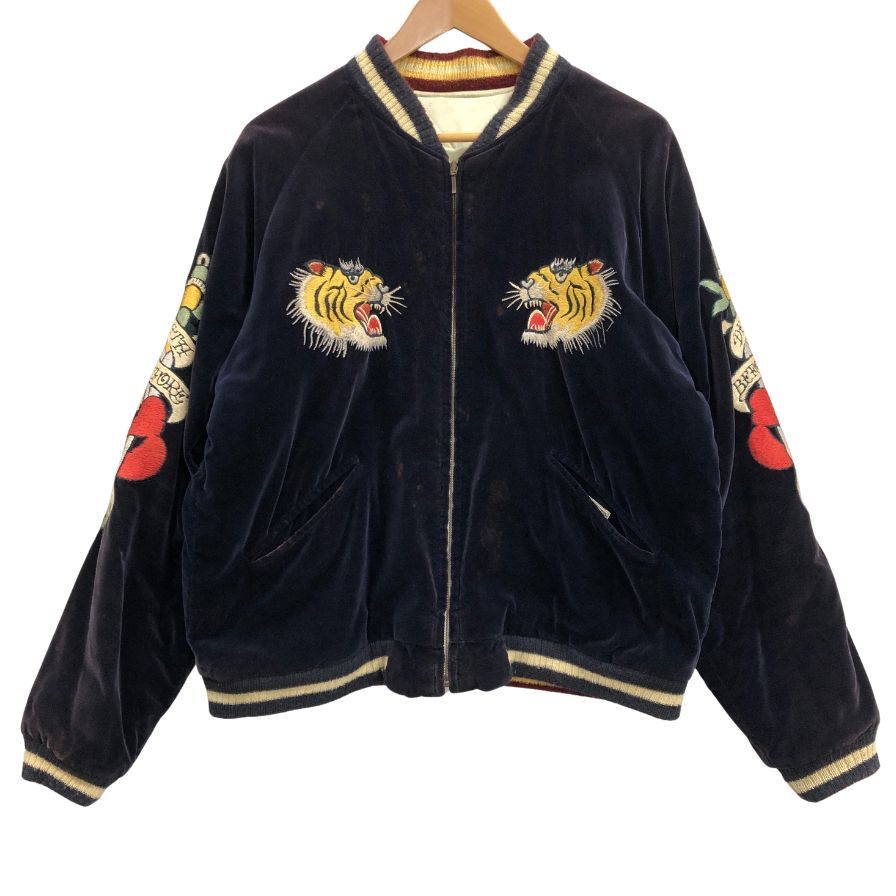 中古◆テーラー東洋 港商 スカジャン リバーシブル 虎 龍 髑髏 刺繍 メンズ ネイビー 裏地ホワイト サイズ大 TAILOR東洋 【AFA20】