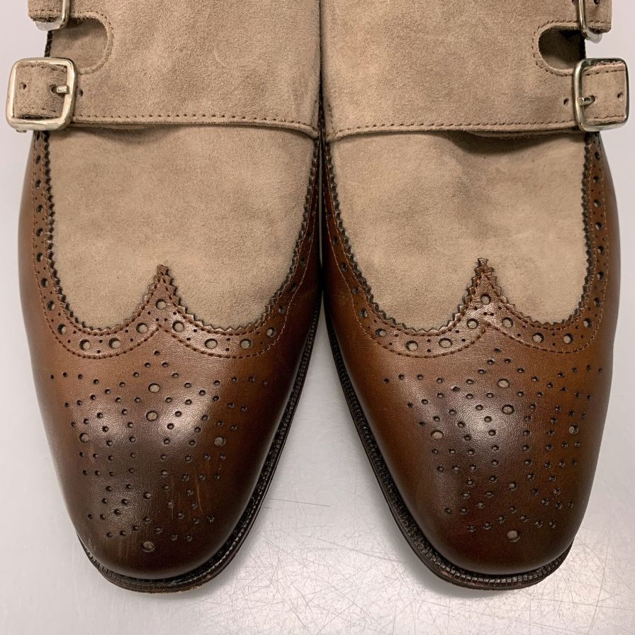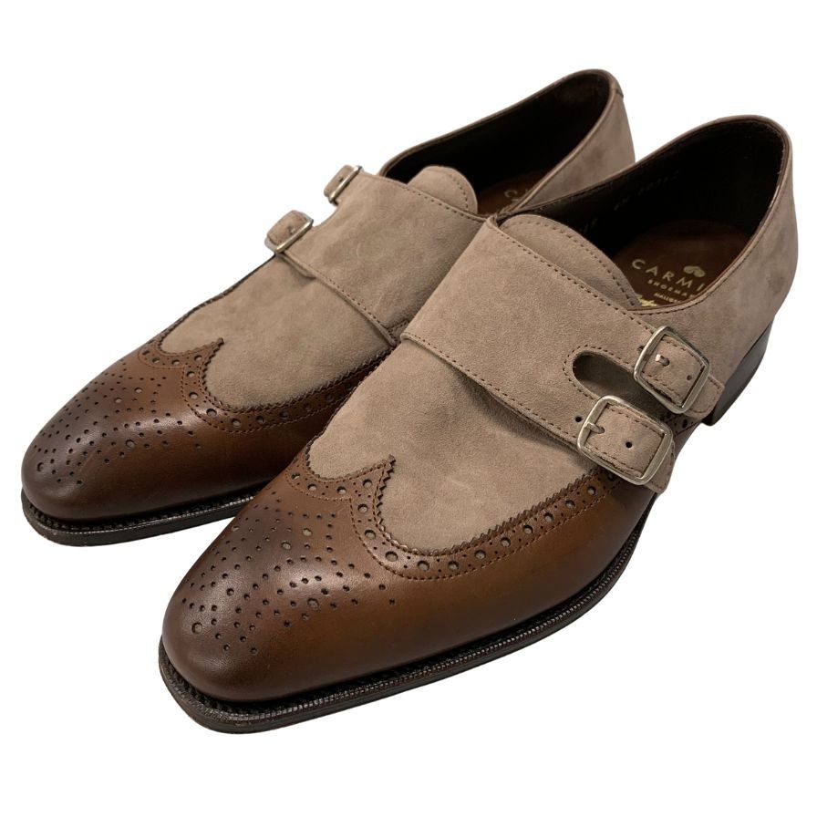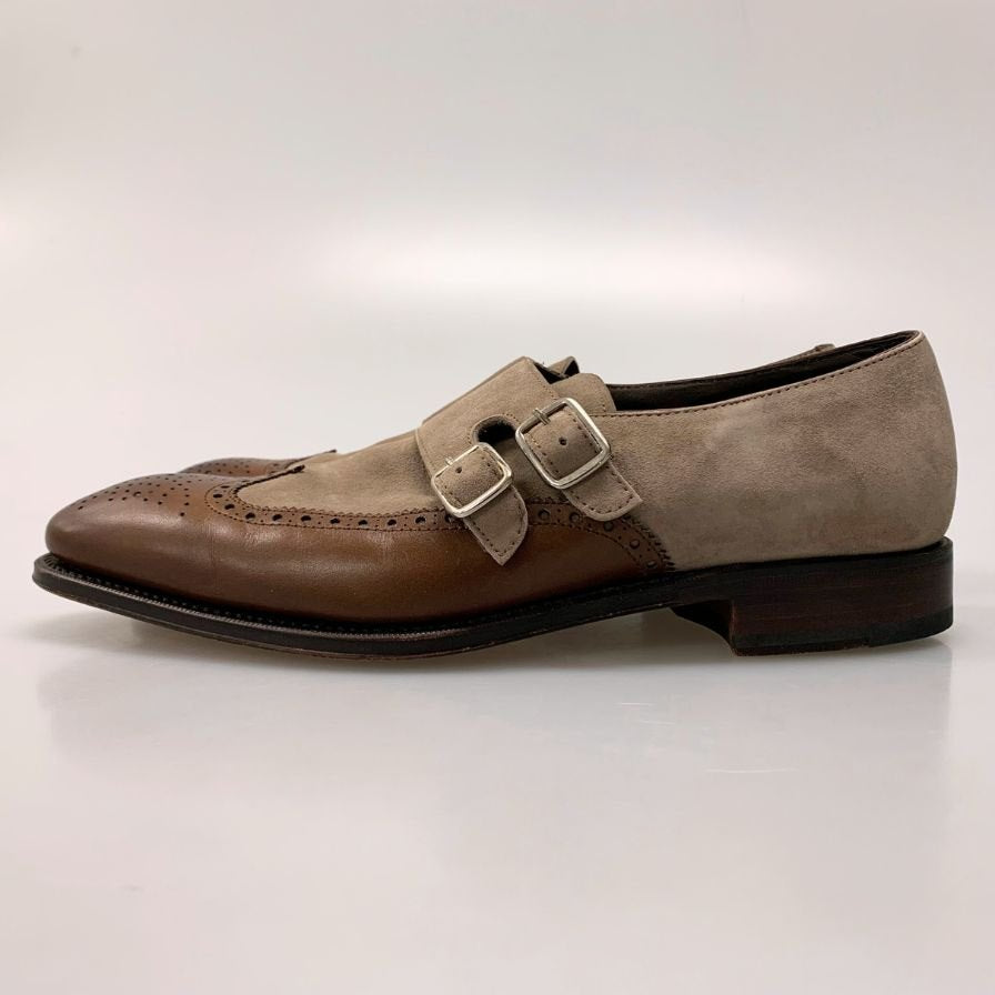 カルミナ レザーシューズ 80342 ダブルモンク スエード コンビ ブラウン サイズ6.5 メンズ CARMINA 約24.5cm【AFC34】