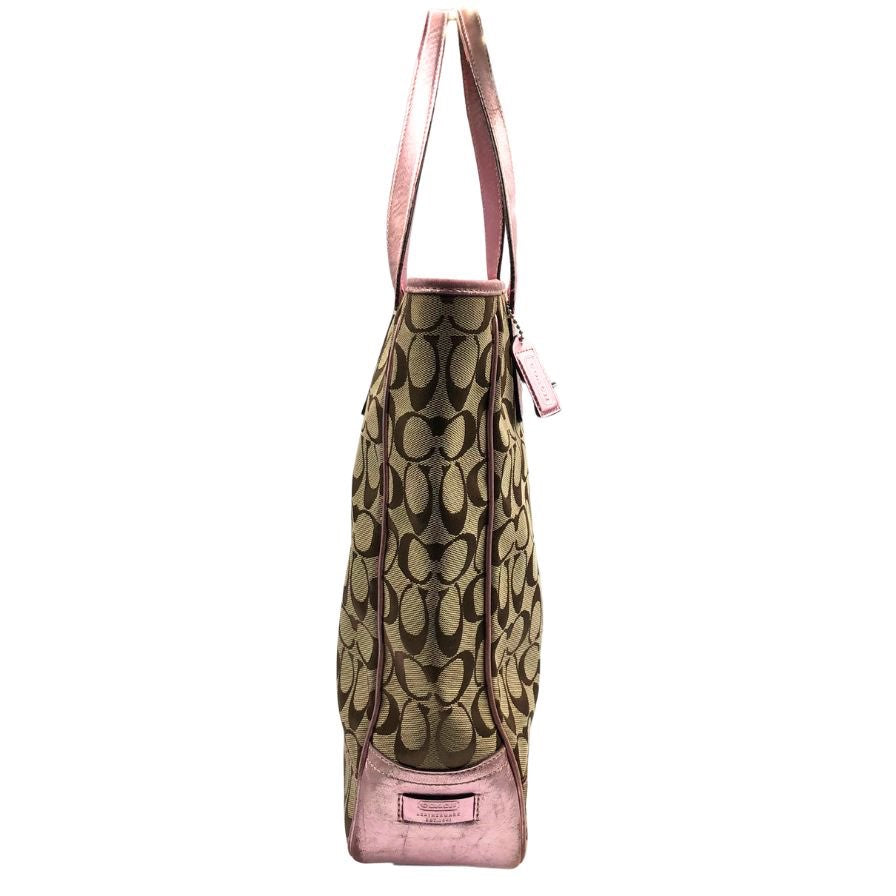 コーチ トートバッグ 7069 シグネチャー キャンバス バッグ 切替 ベージュ ピンク COACH【AFE11】