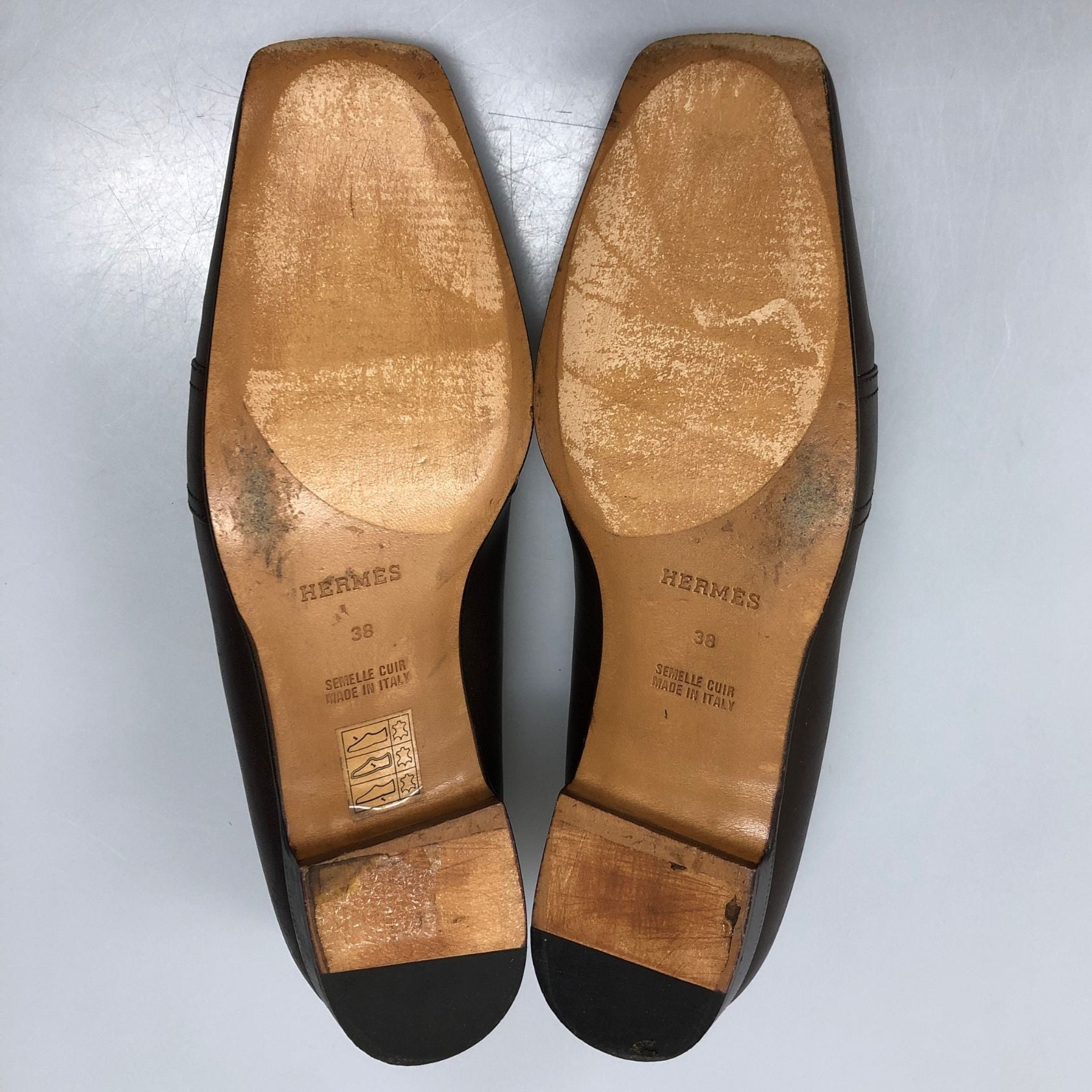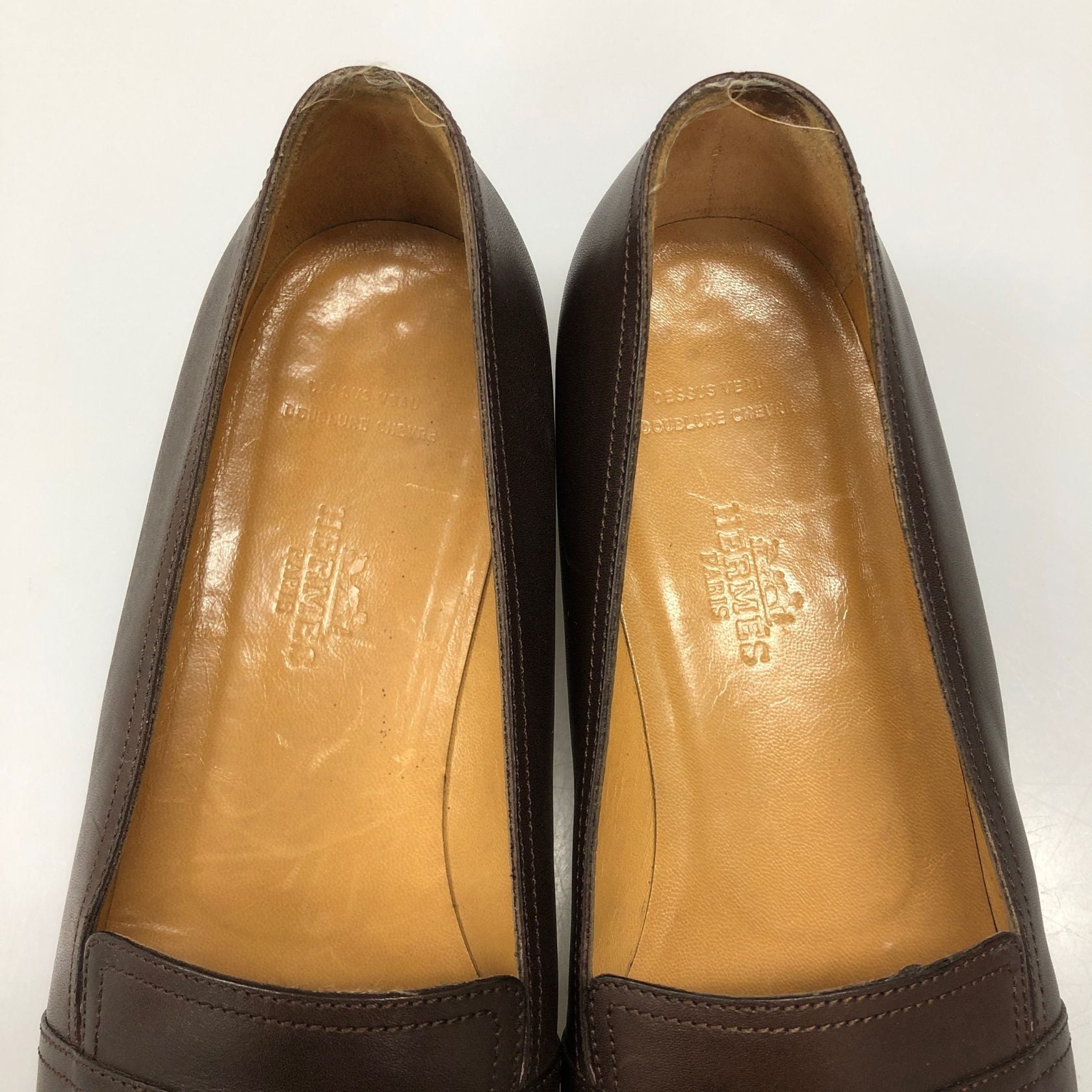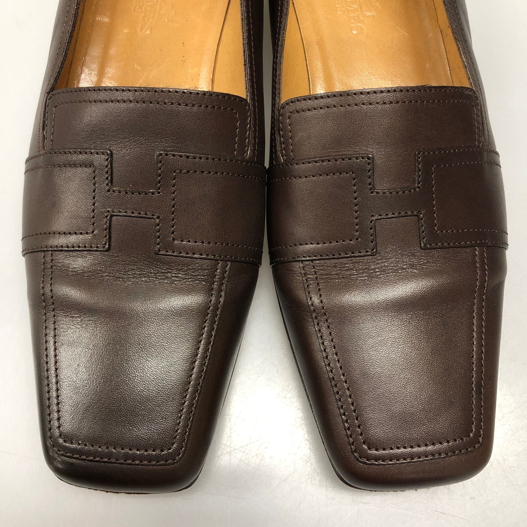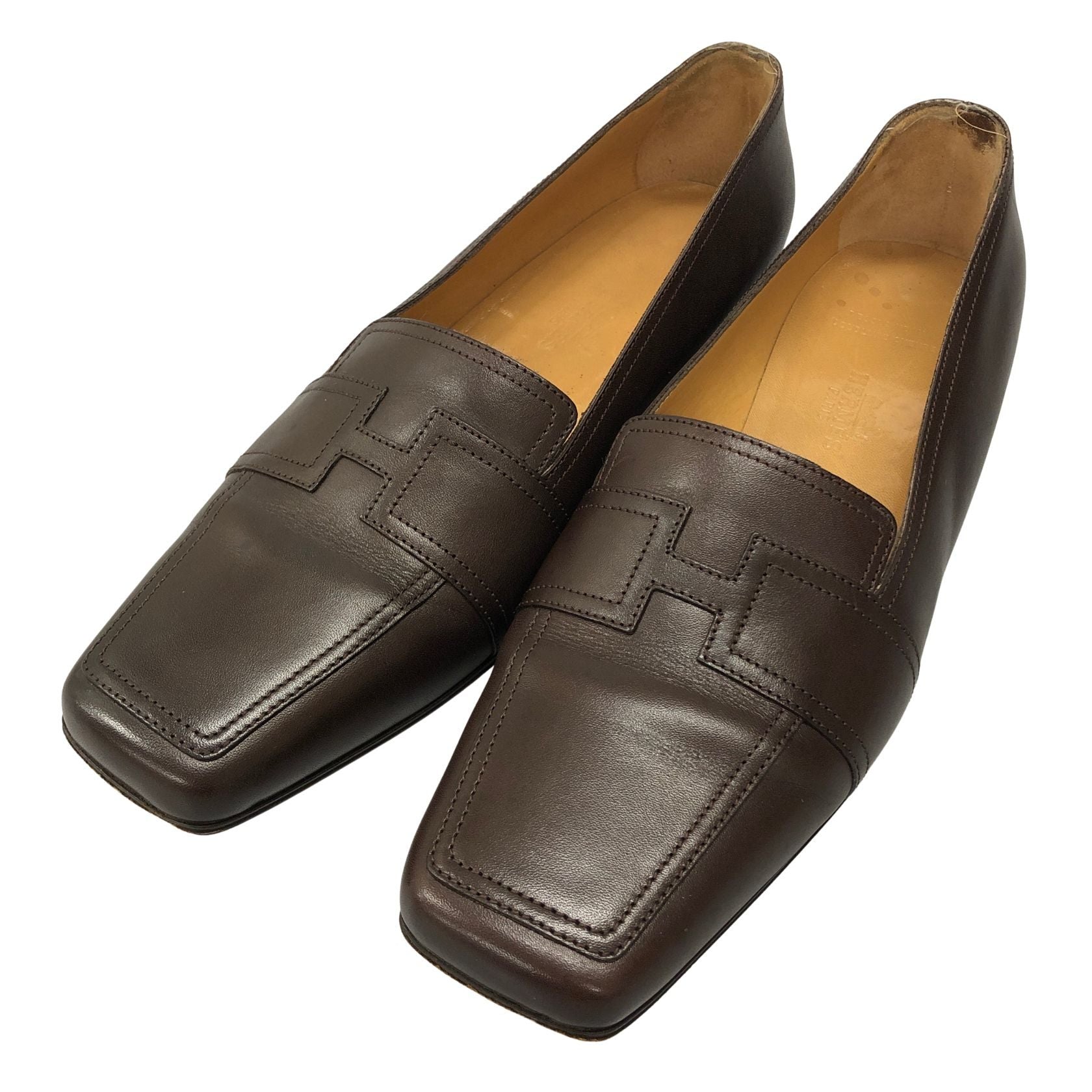 エルメス ローファー H刺繍 レディース サイズ38 ブラウン HERMES 約24.5cm【AFC41】