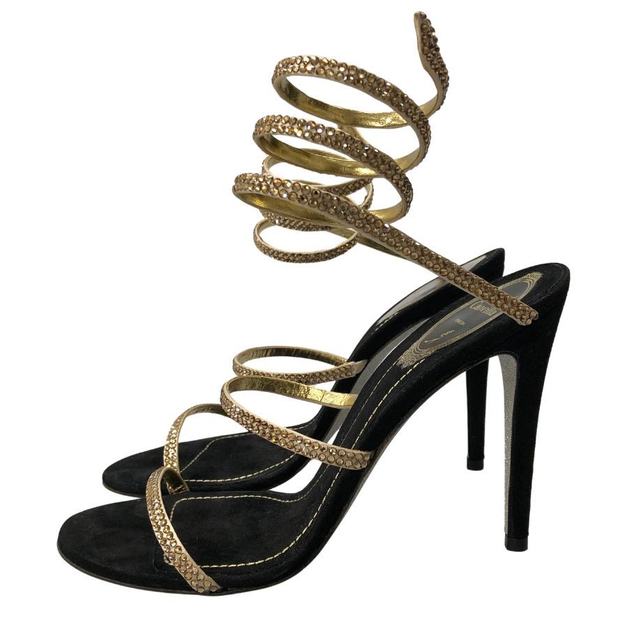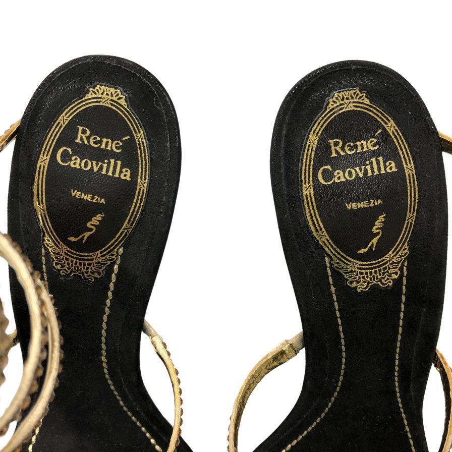 レネカオヴィラ ヒールサンダル スネーク ラインストーン ブラック×ゴールド レディース サイズ37 Rene Caovilla 約23.5cm【AFD2】
