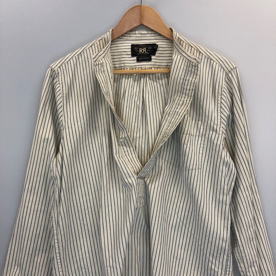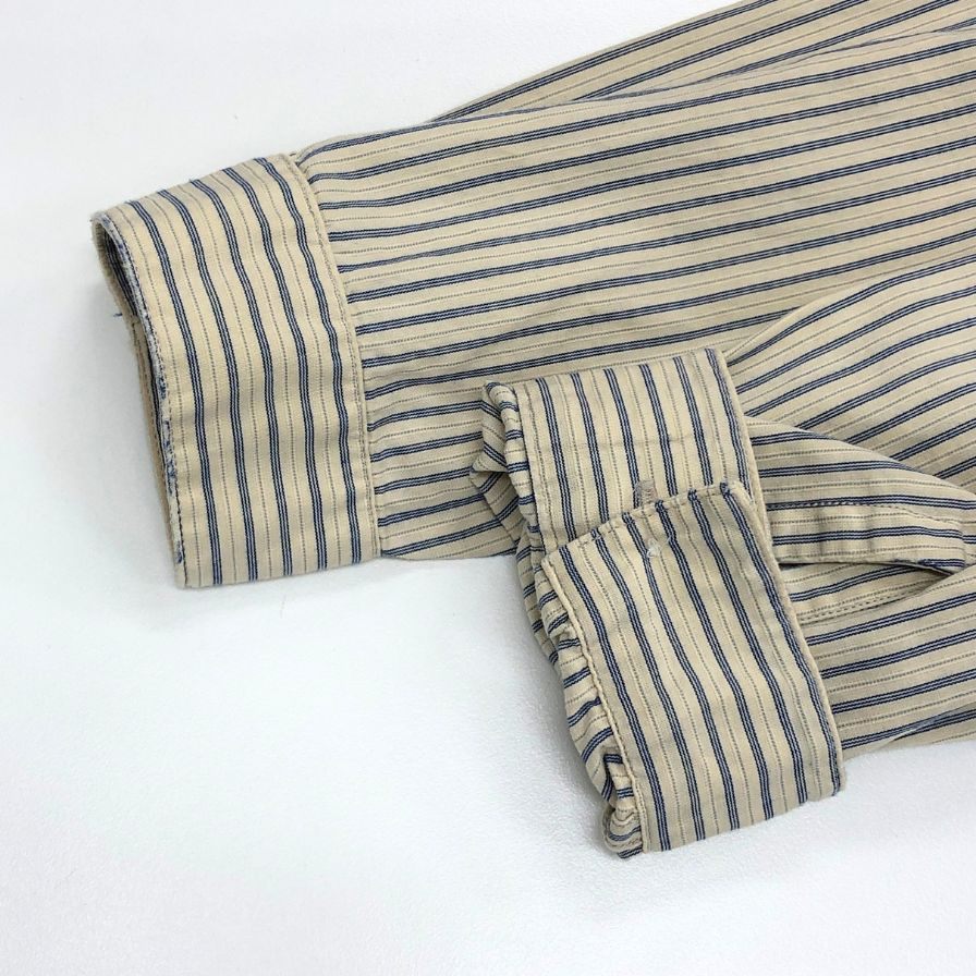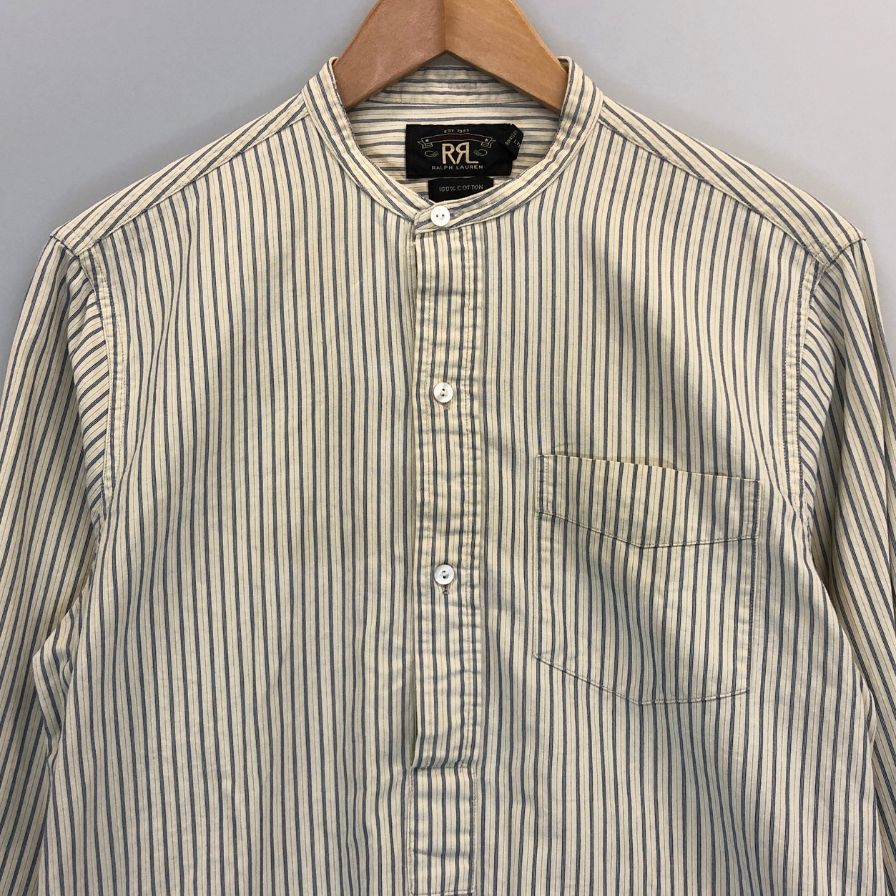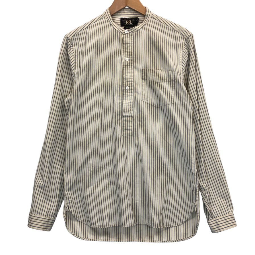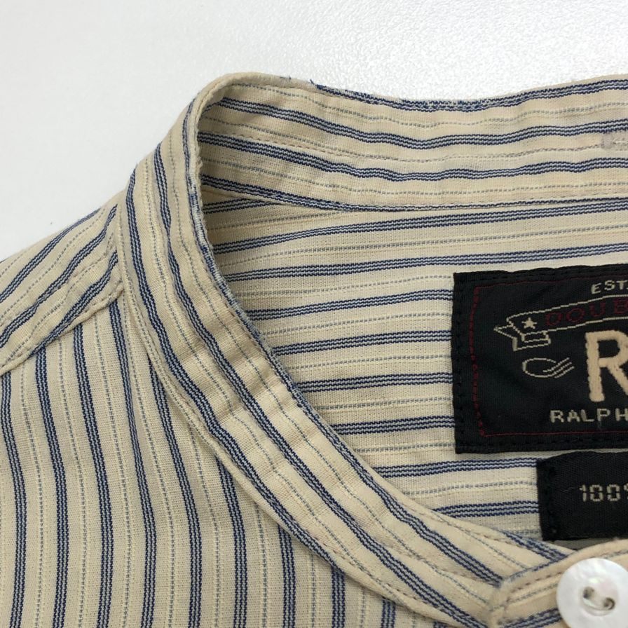 美品◆ダブルアールエル ラルフローレン 90S 1つ星タグ バンドカラーシャツ ハーフボタン ストライプ ベージュ メンズ サイズS RRL RALPH LAUREN 【AFB4】