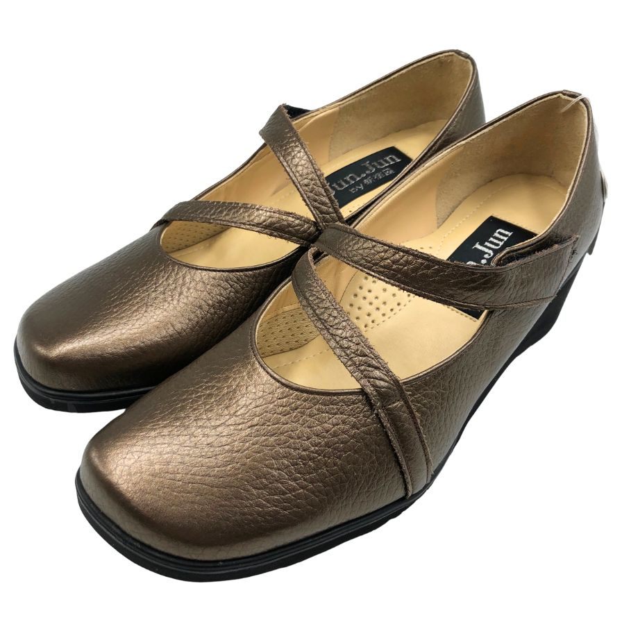 ジュンジュンバイ新宿屋 パンプス 3072 ブロンズ ベルト付 レディース サイズ22.5 Jun.Jun by shinjukuya 約22.5cm【7-9】