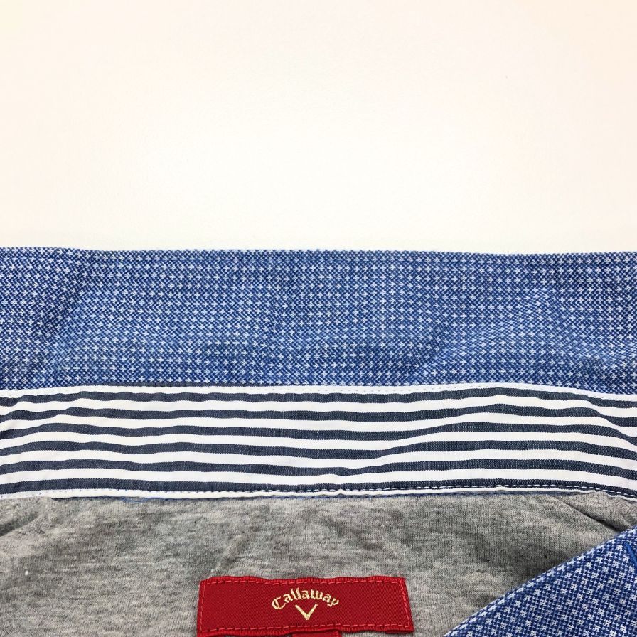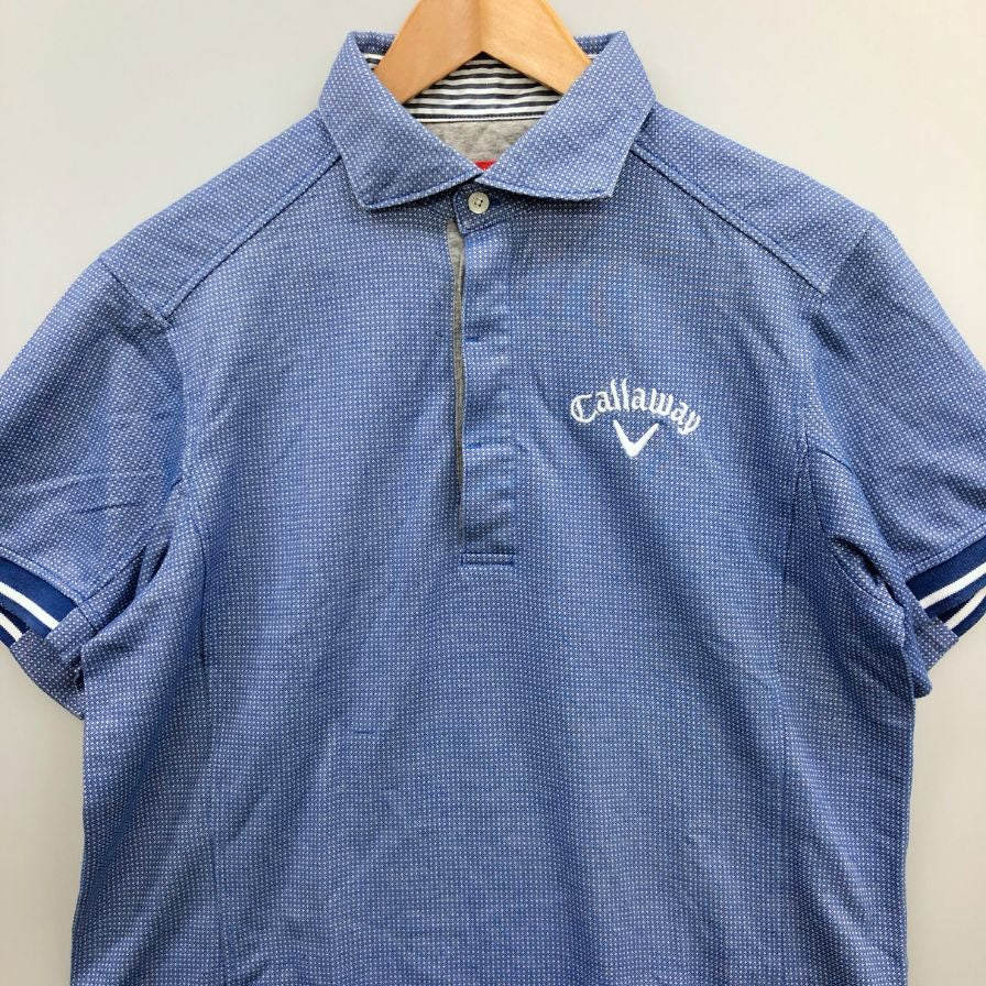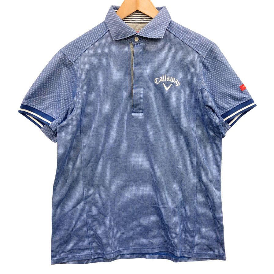 美品◆キャロウェイ ポロシャツ ドット総柄 刺繍 ロゴ コットン ゴルフウェア ブルー メンズ サイズL Callaway 【AFB6】