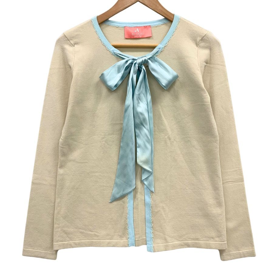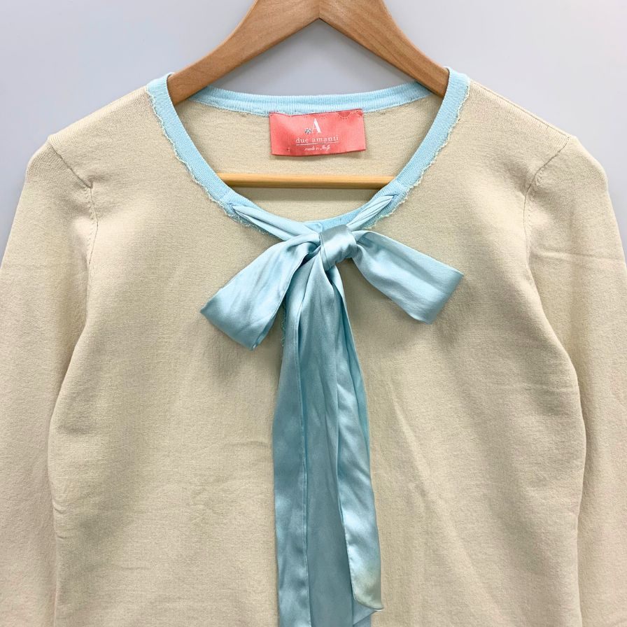 美品◆デュ アマンティ リボントップス ジャケット イタリア製 レディース サイズ2 ベージュ due amanti 【AFB29】