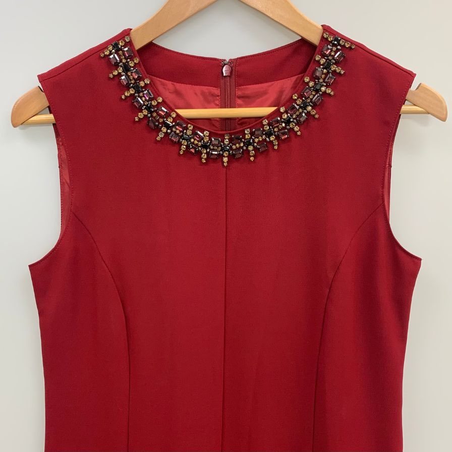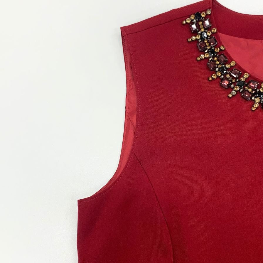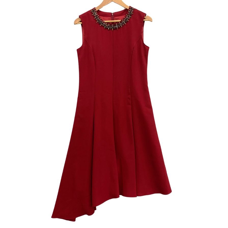 極美品◆グレースクラス ノースリーブワンピース ビジュー装飾 レッド レディース サイズ36 GRACE Class 【AFB14】