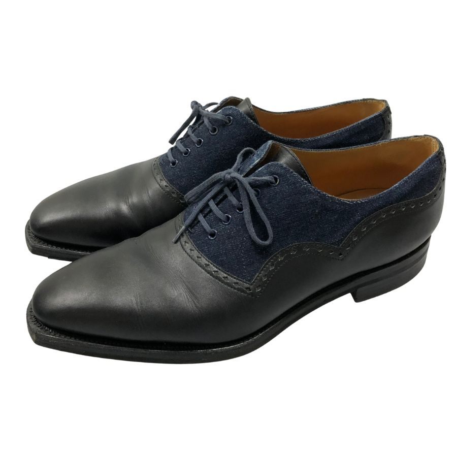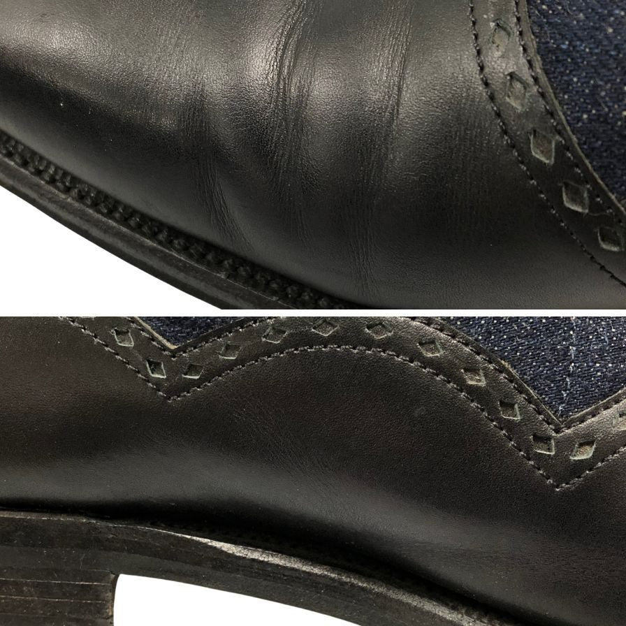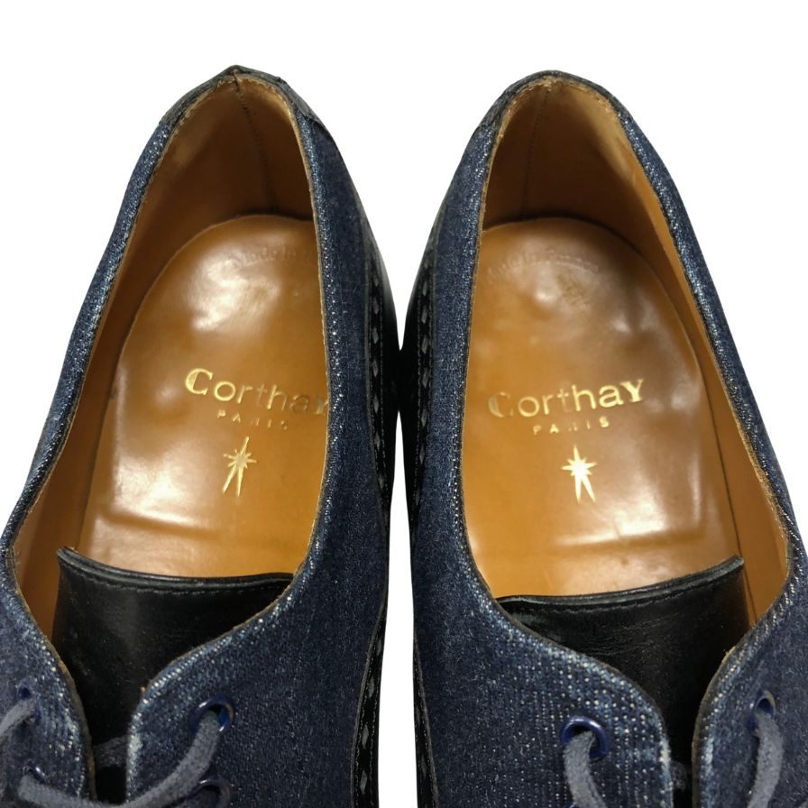 コルテ レザーシューズ コンビ デニム×レザー スクエアトゥ サイズ8 インディゴ×ブラック CorthaY 約27.0cm【AFD5】