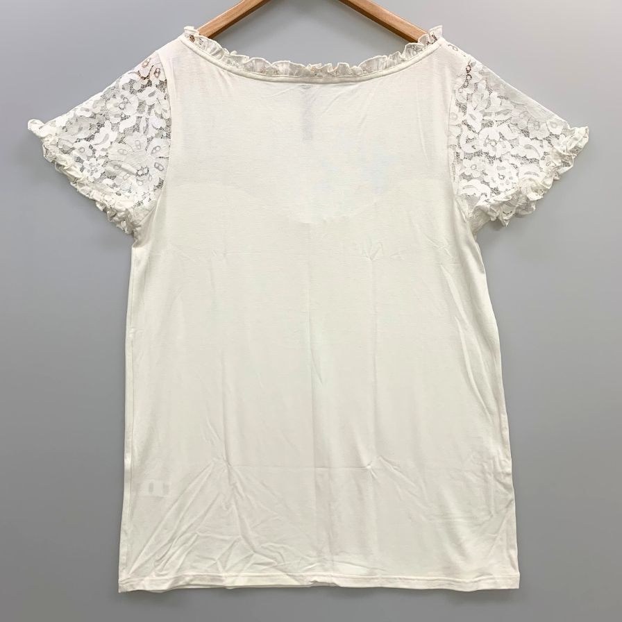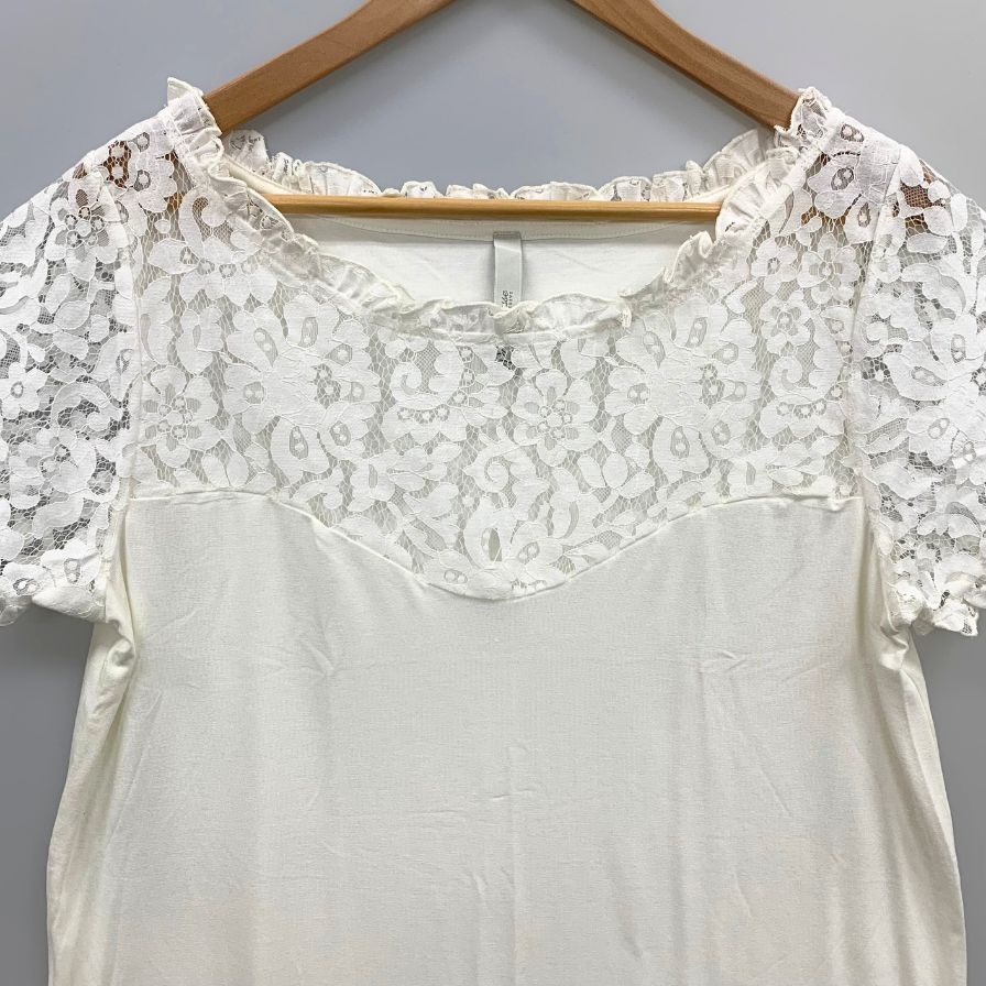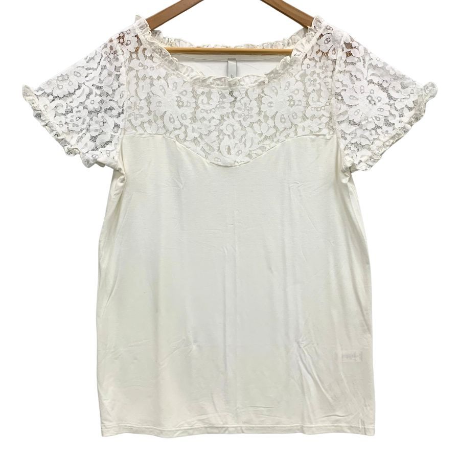 美品◆プリマクラッセ 半袖トップス レース仕様 レディース サイズL ホワイト PRIMA CLASSE 【AFB27】