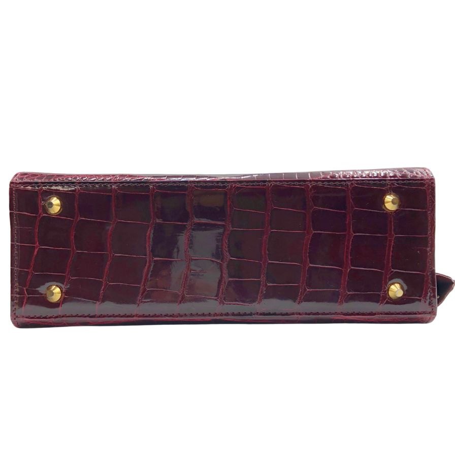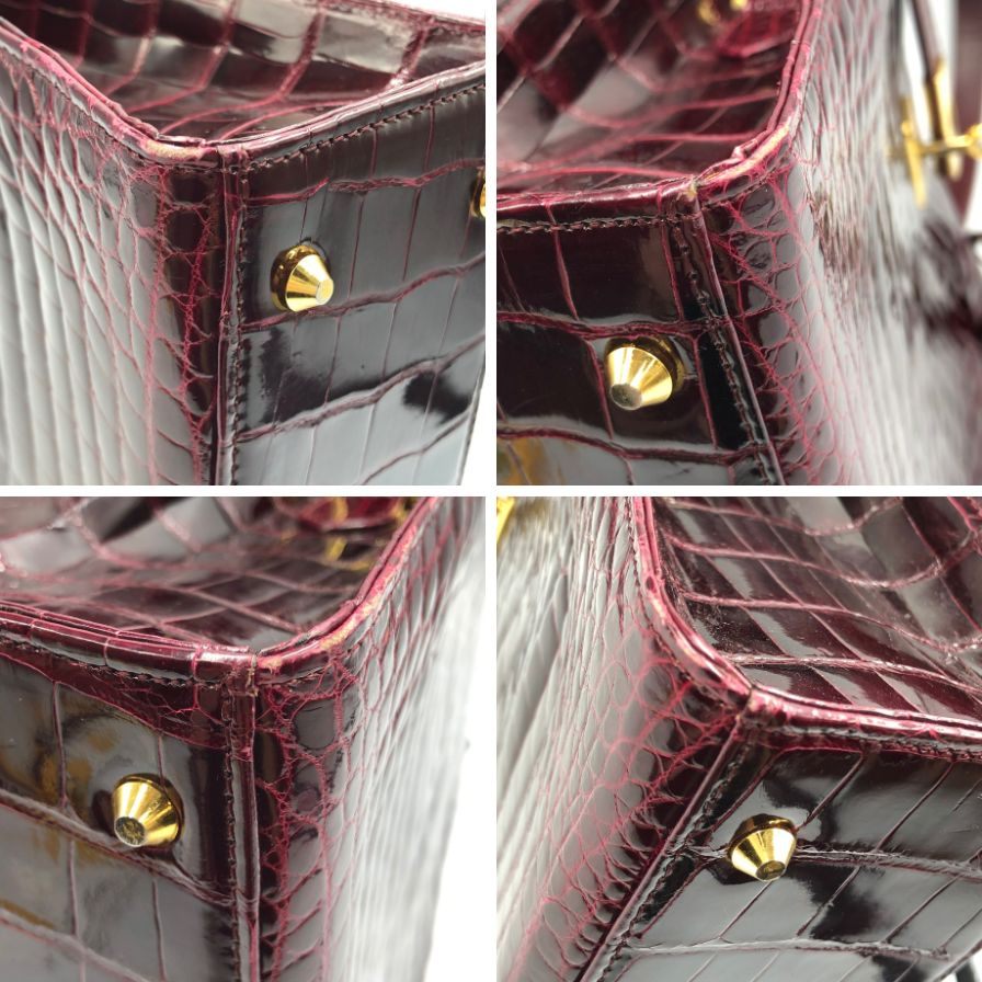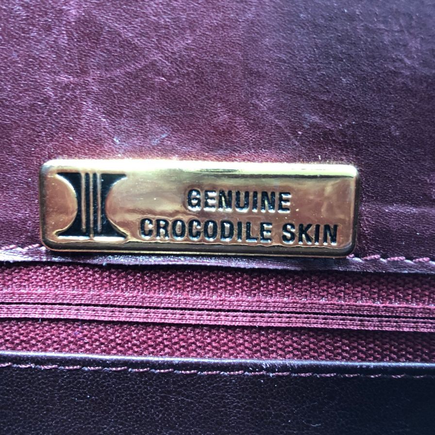 ノーブランド ショルダーバッグ クロコダイル 本革 レザー ターンロック ボルドー ゴールド金具 GENUINE CROCODILE SKIN【AFE6】