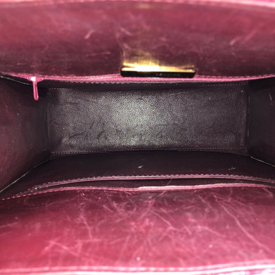 表面スレ、金具部分•角•鍵に小傷&スレ、保存袋に若干の汚れが見られます。 内側状態ランク【AB】 小傷•スレが見られます。 |