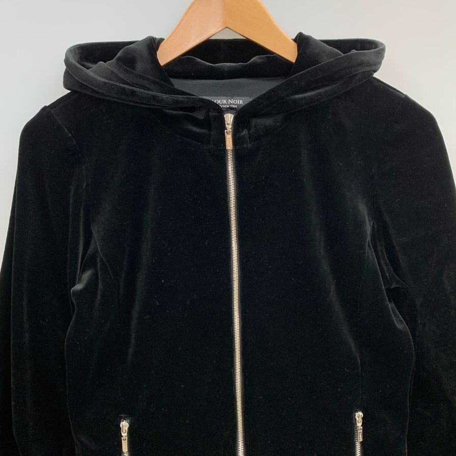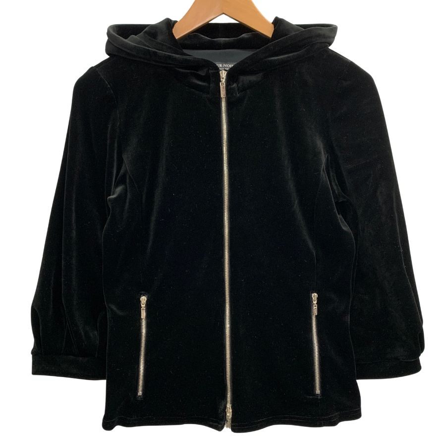 美品◆ベロアノワールバイフォクシー ニューヨーク ジップパーカー ベロア ストレッチ フード ブラック レディース サイズ40 VELOUR NOIR by FOXEY NEWYORK 【AFB20】