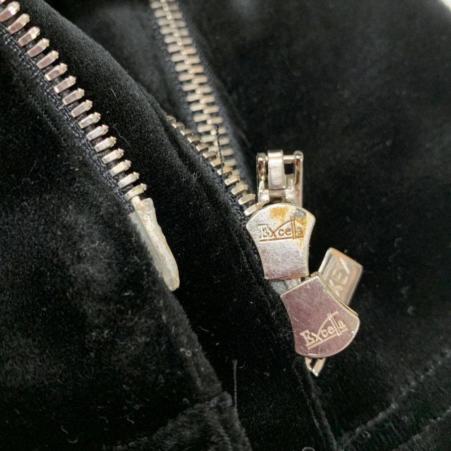 ジップ金具部分くすみや汚れが見られます。 |
