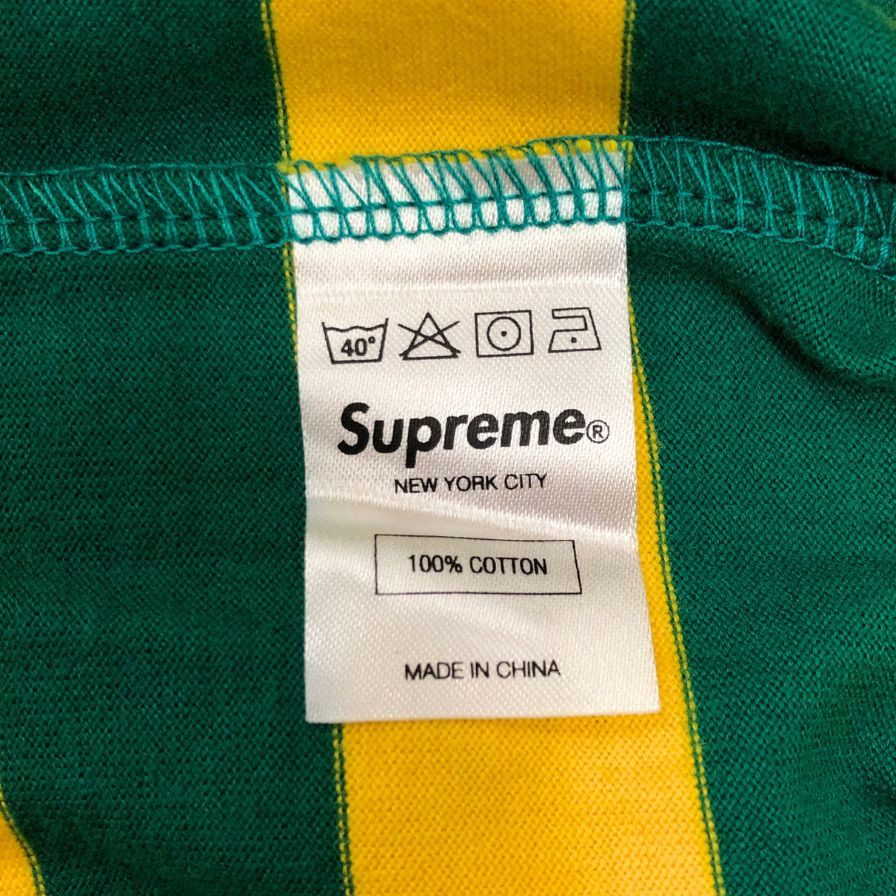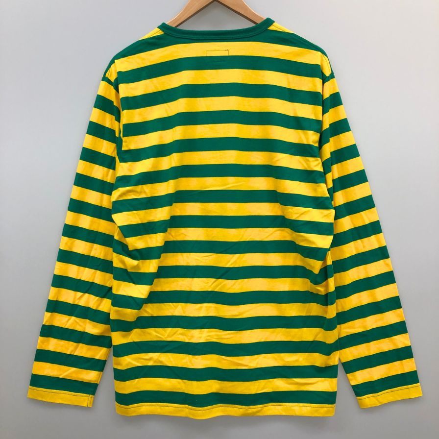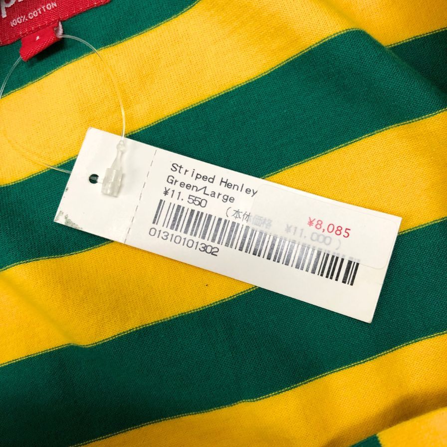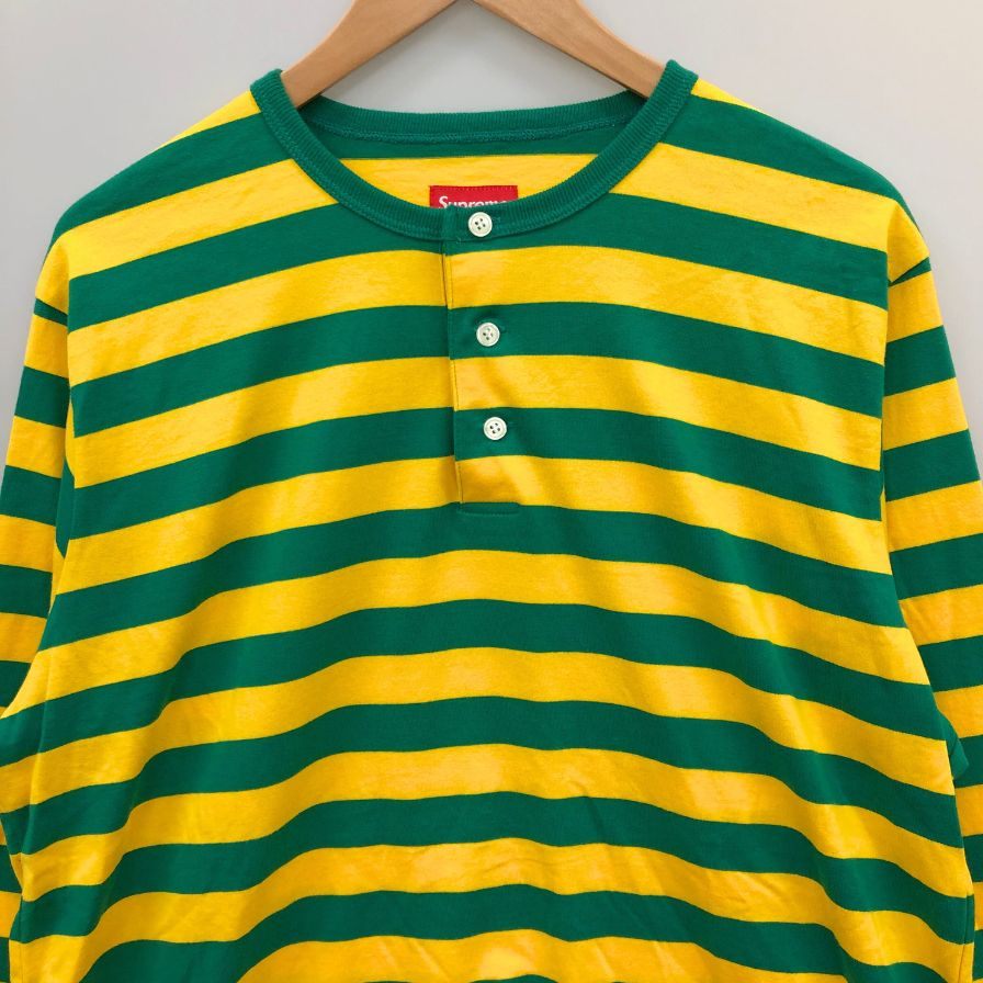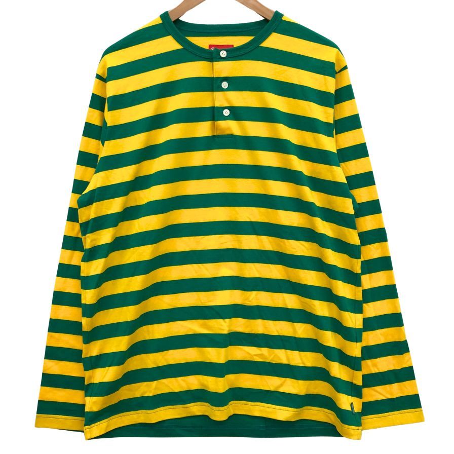 新品同様◆シュプリーム ボーダー ロンT ヘンリーネック トップス メンズ サイズL イエロー×グリーン Supreme 【AFB37】
