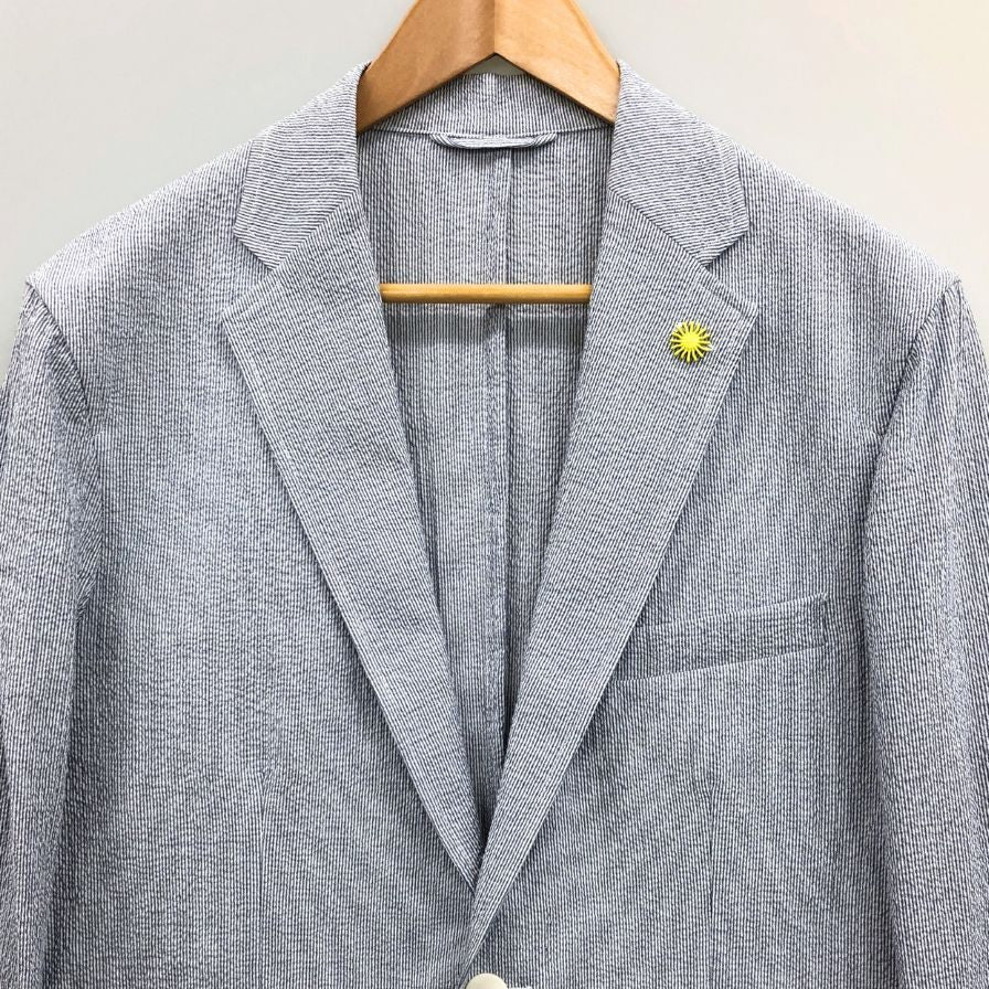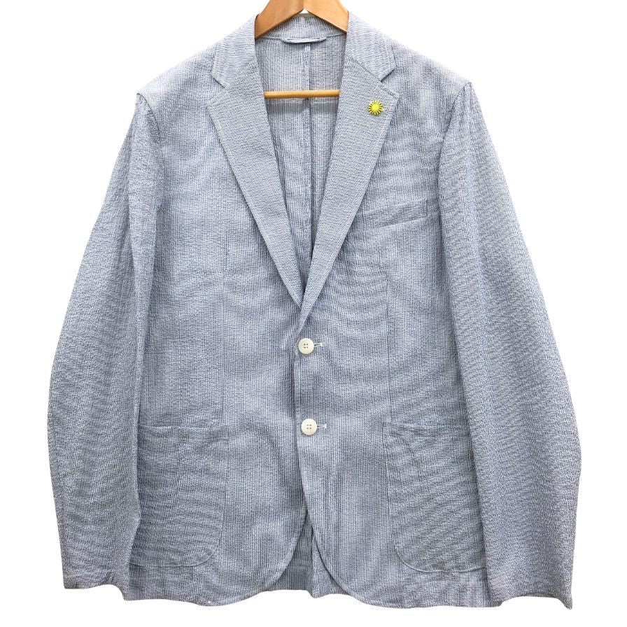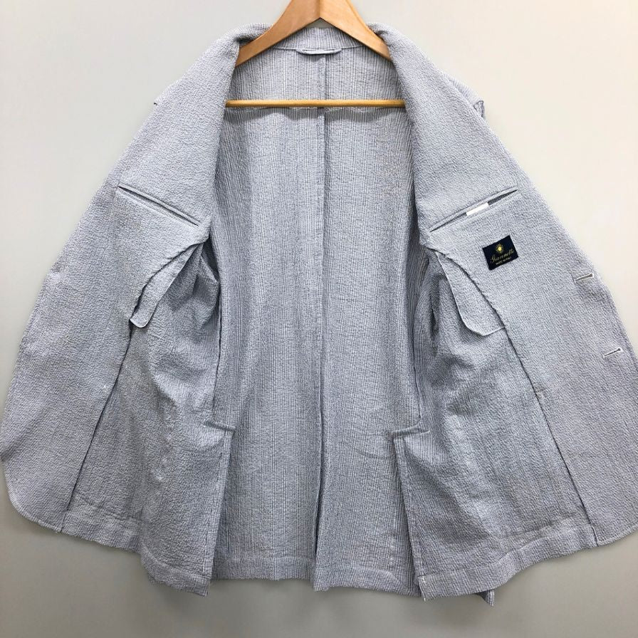新品同様◆ジャンネット テーラードジャケット 41274 シアサッカー ストライプ ライトブルー系 サイズ46 giannetto 【AFB18】