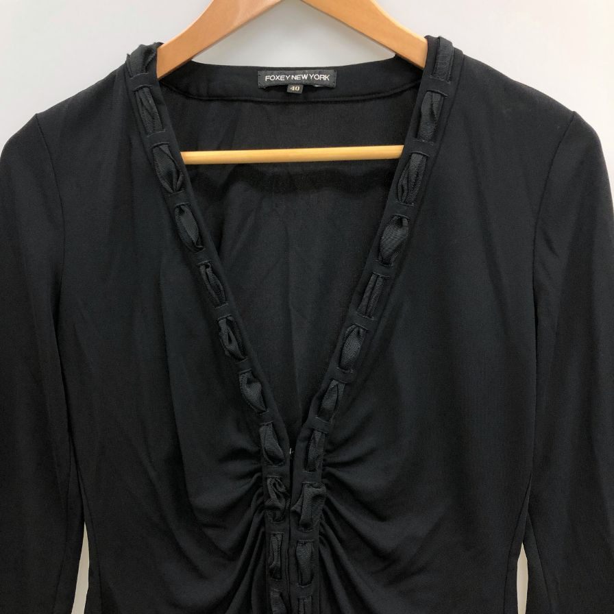 美品◆フォクシーニューヨーク マットストレッチ ジャージ カーディガン ダークネイビー 40サイズ レディース 21366-ARJGA01 FOXEY NEW YORK 【AFB35】