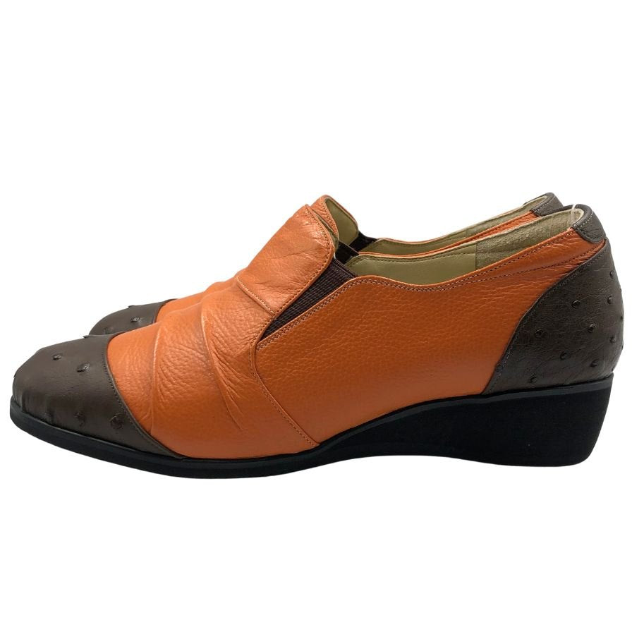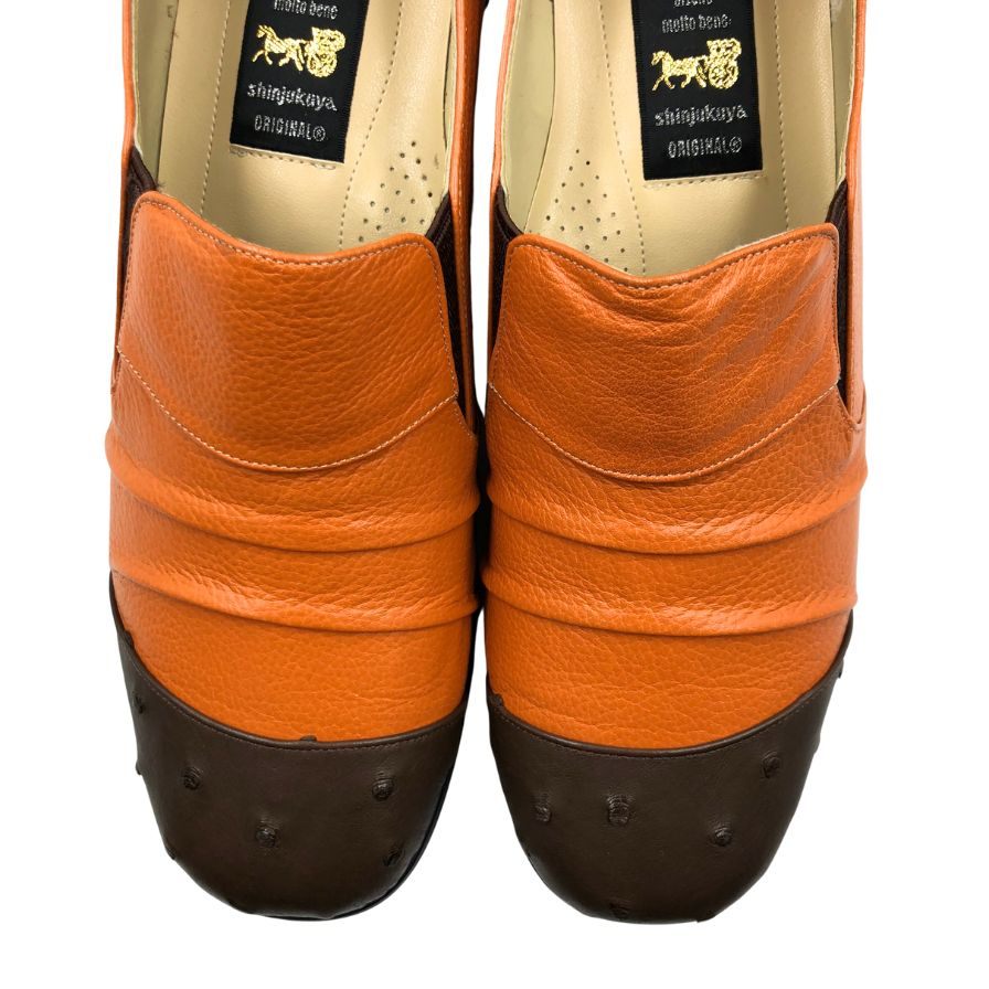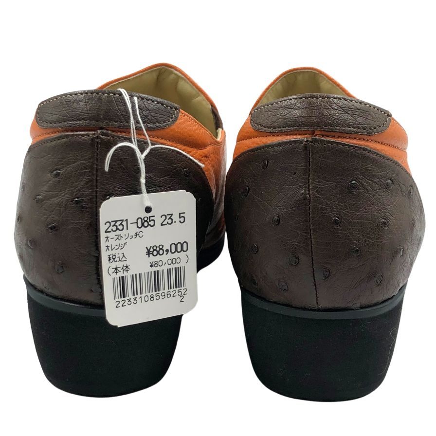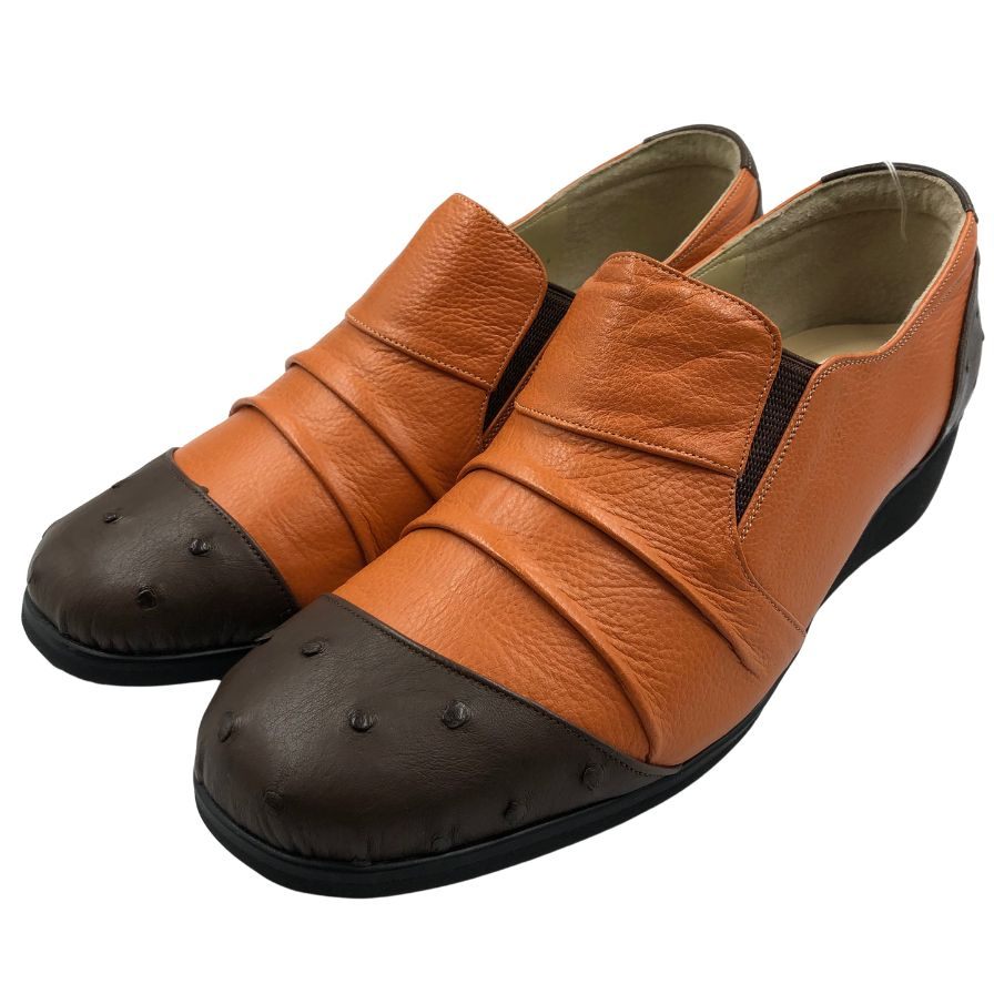新宿屋 レザースニーカー オーストリッチ 2331-085 オレンジ×ブラウン 23.5cm レディース shinjukuya 約23.5cm【7-5】
