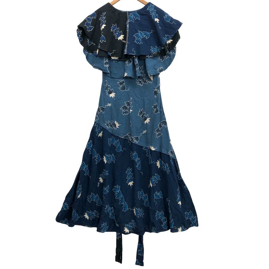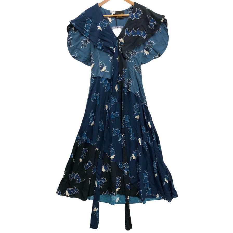 極美品◆ロエベ×パウラズイビザ 半袖ワンピース 総柄 ネイビー レディース サイズ34 LOEWE×Paulas Ibiza 【AFB5】