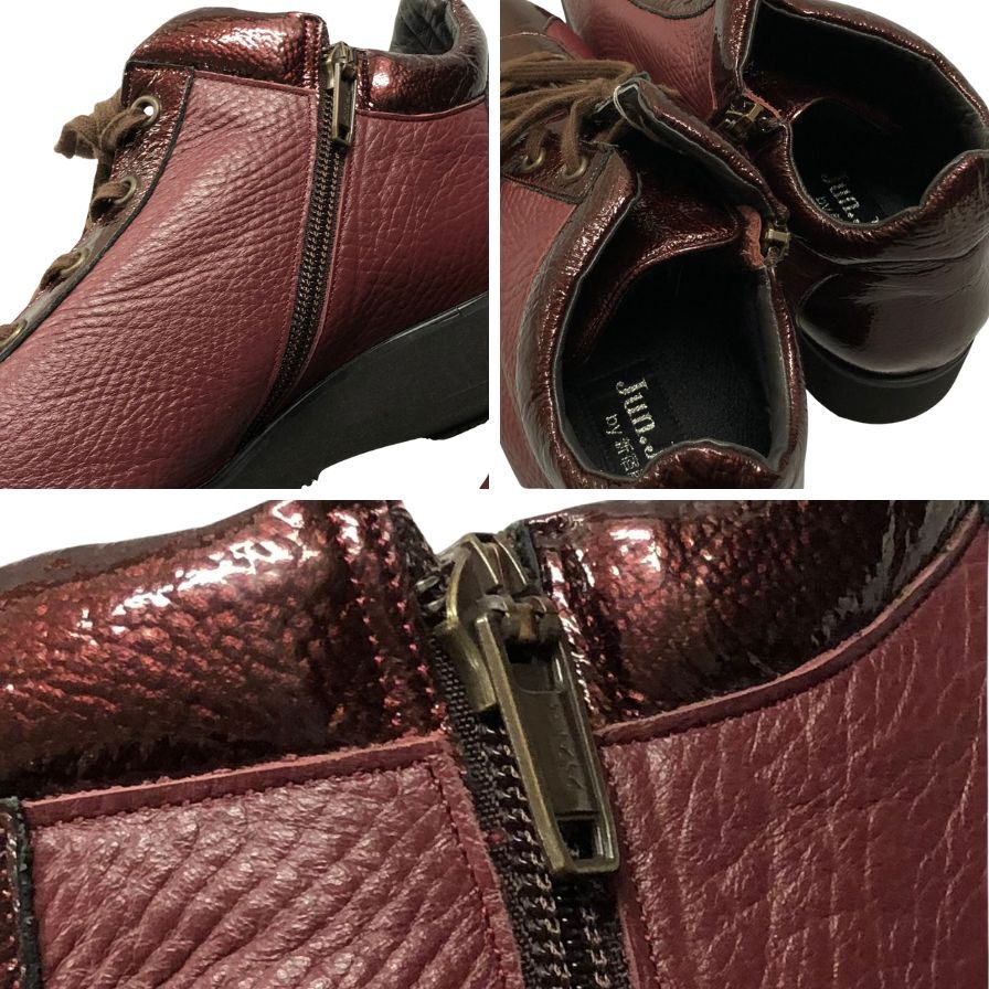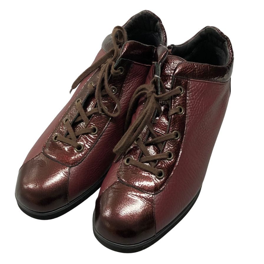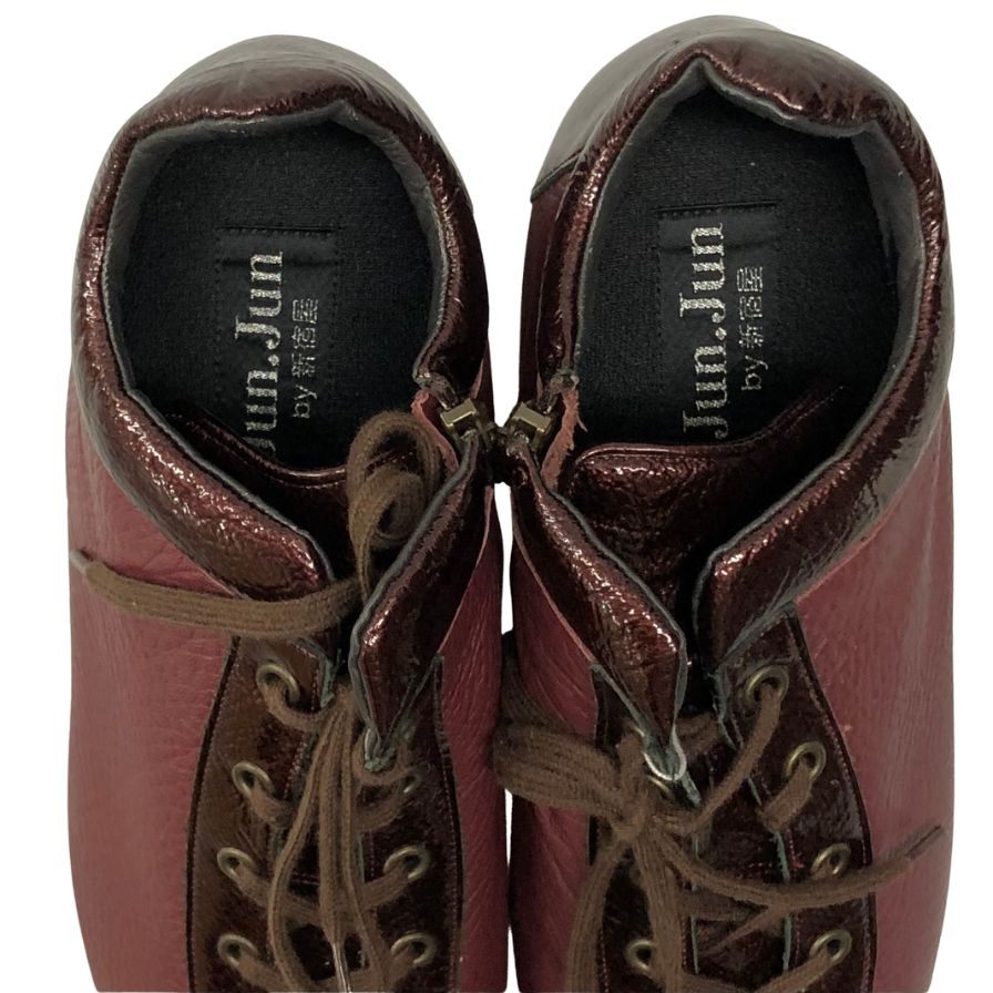 ジュンジュンバイ新宿屋 スニーカー 3411 ヒール レザー ネブラ エヌドラ エナメル ワイン レディース サイズ24.5 Jun.Jun by shinjukuya 約24.5cm【7-10】