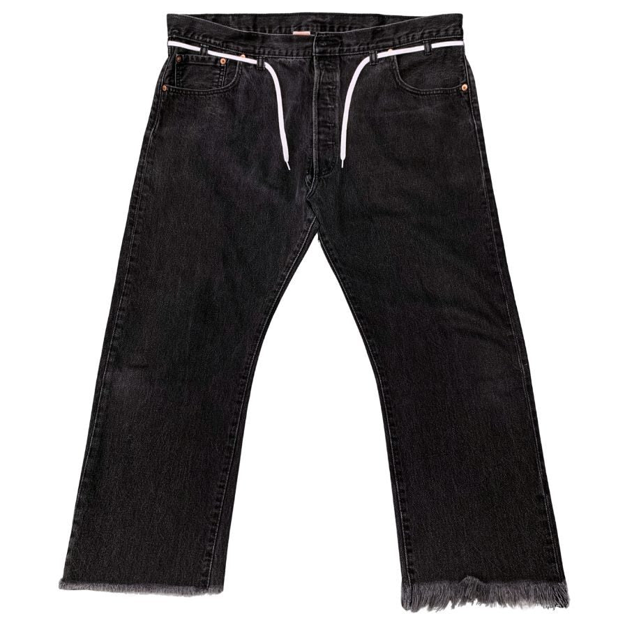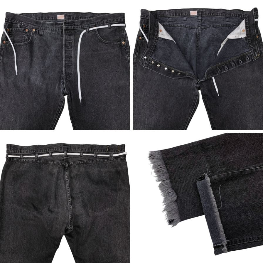 メゾンエウレカ リーバイス ワイドデニムパンツ ユーズド加工 再構築 カットオフ メンズ ブラック系 サイズS MAISON EUREKA LEVIS 【AFB32】