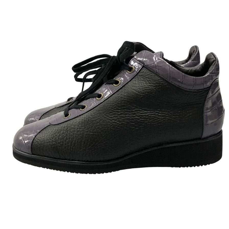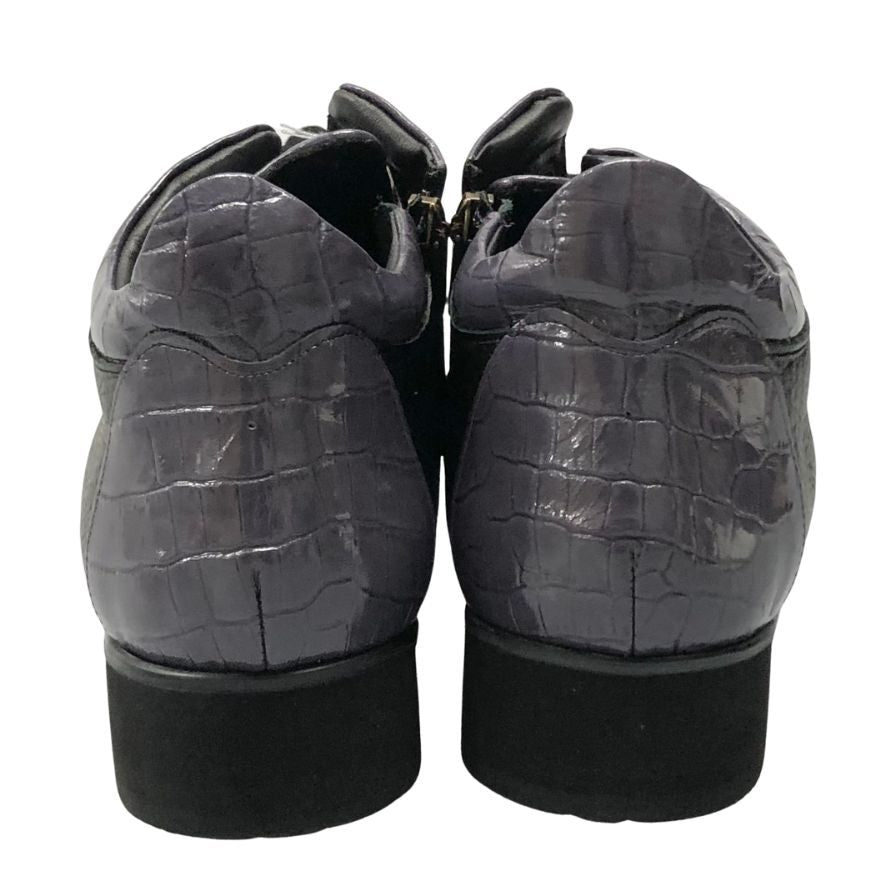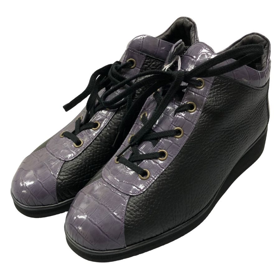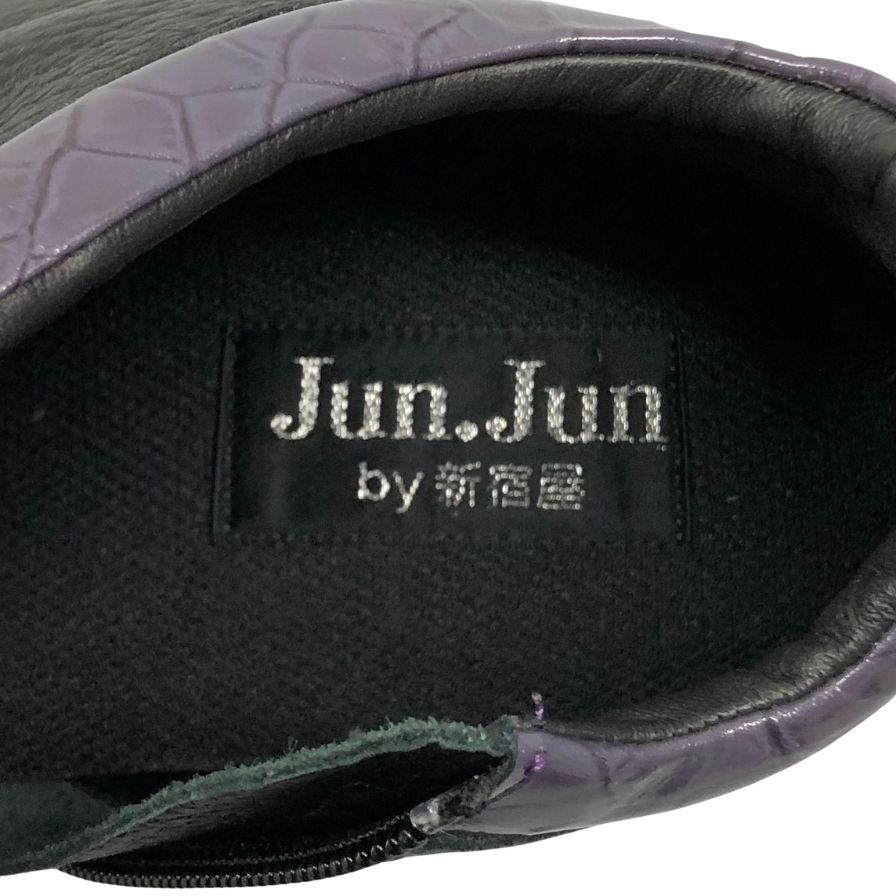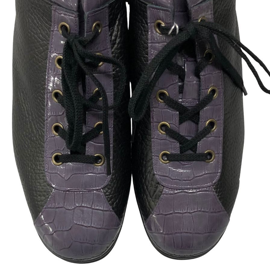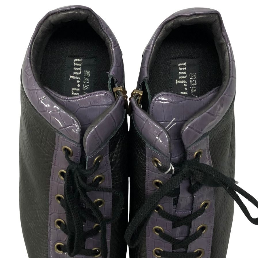ジュンジュンバイ新宿屋 スニーカー ヒール レザー 3411 パープル クロコ型押し ブラック 切替 レディース サイズ23 Jun.Jun by shinjukuya 約23.0cm【7-11】