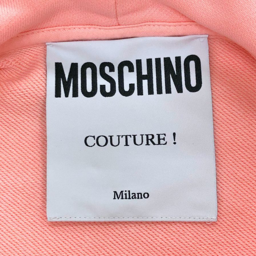 極美品◆モスキーノ クチュール! ドロップショルダー 七分袖 パーカー トップス Don't Call Me ラビット イラスト レディース サイズ40 ピンク Moschino COUTURE! 【AFB45】