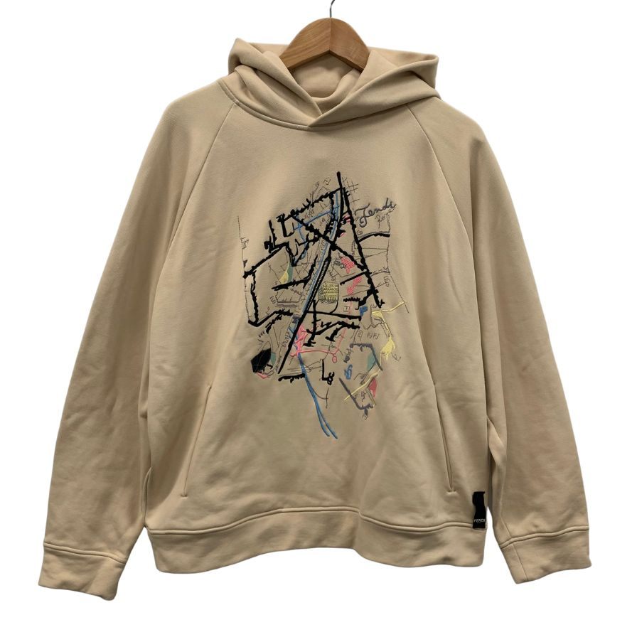 美品◆フェンディ 21AW プルオーバーパーカー 刺繍 ベージュ メンズ サイズXL FY1115 FENDI 【AFB38】