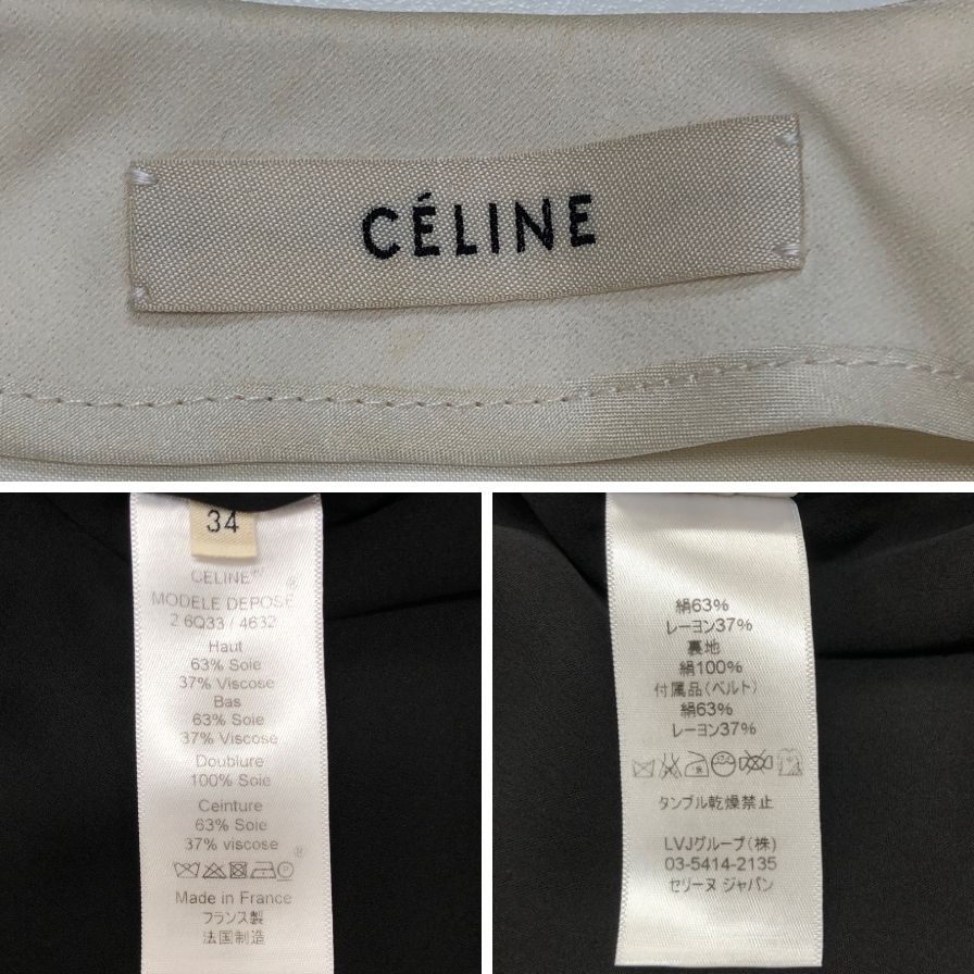 美品◆セリーヌ バイカラーワンピースドレス 国内正規品 MODELE DEPOSE 6Q33 4632 レディース サイズ34 ブラック×ホワイト CELINE 【AFB5】