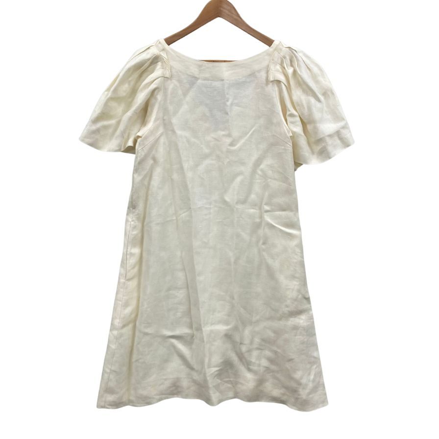 中古◆マイラン 半袖ワンピース パフスリーブ リネン レディース サイズF ベージュ MYLAN 【AFB47】