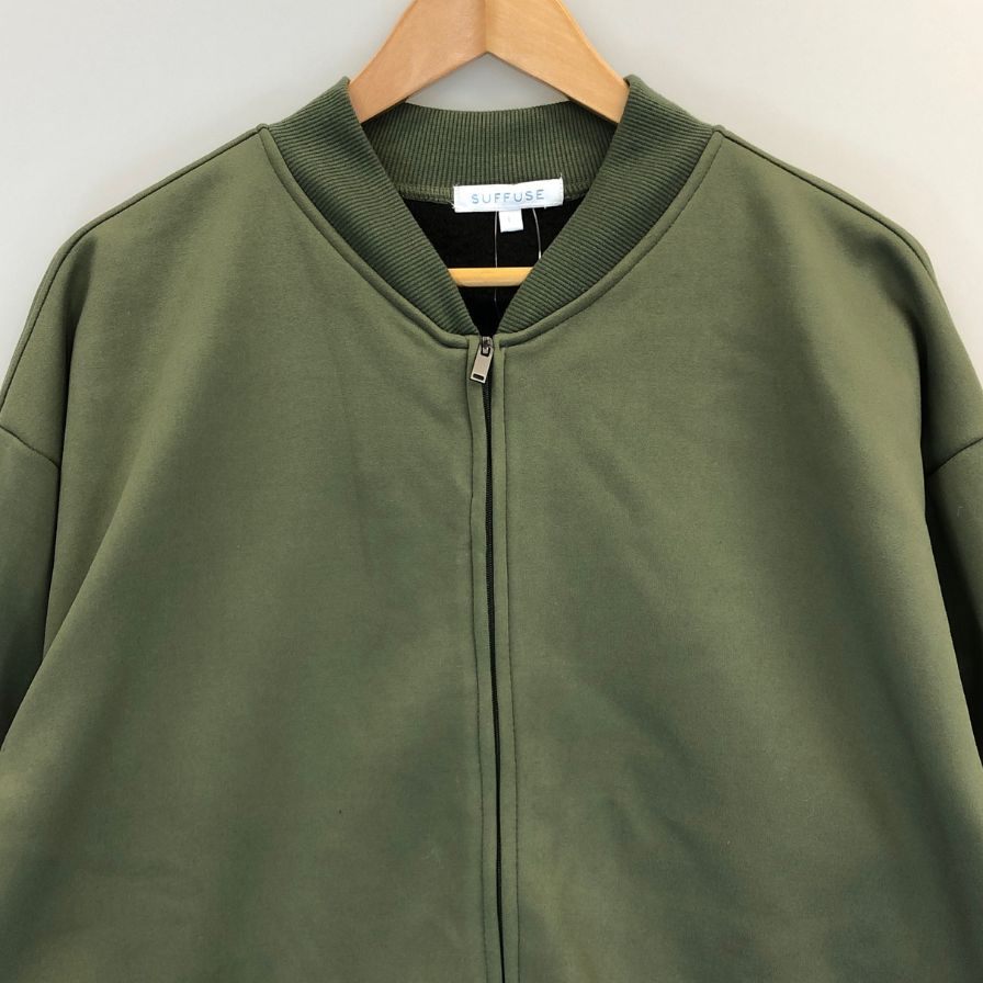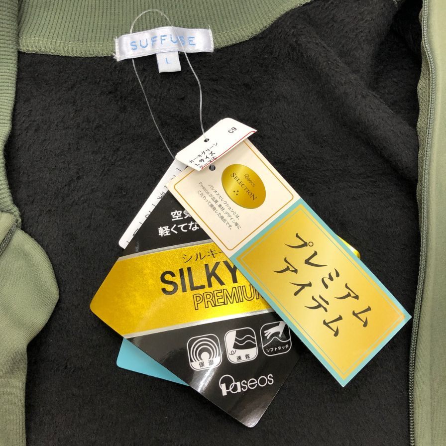 新品同様◆サフューズ ジップアップ ミリタリーブルゾン シルキーエアー プレミアム カーキ サイズL メンズ 保温 裏起毛 SUFFUSE SILKY AIR PREMIUM 【AFB11】