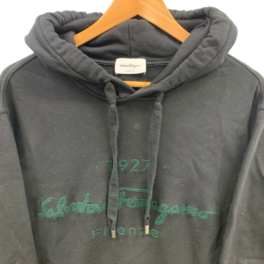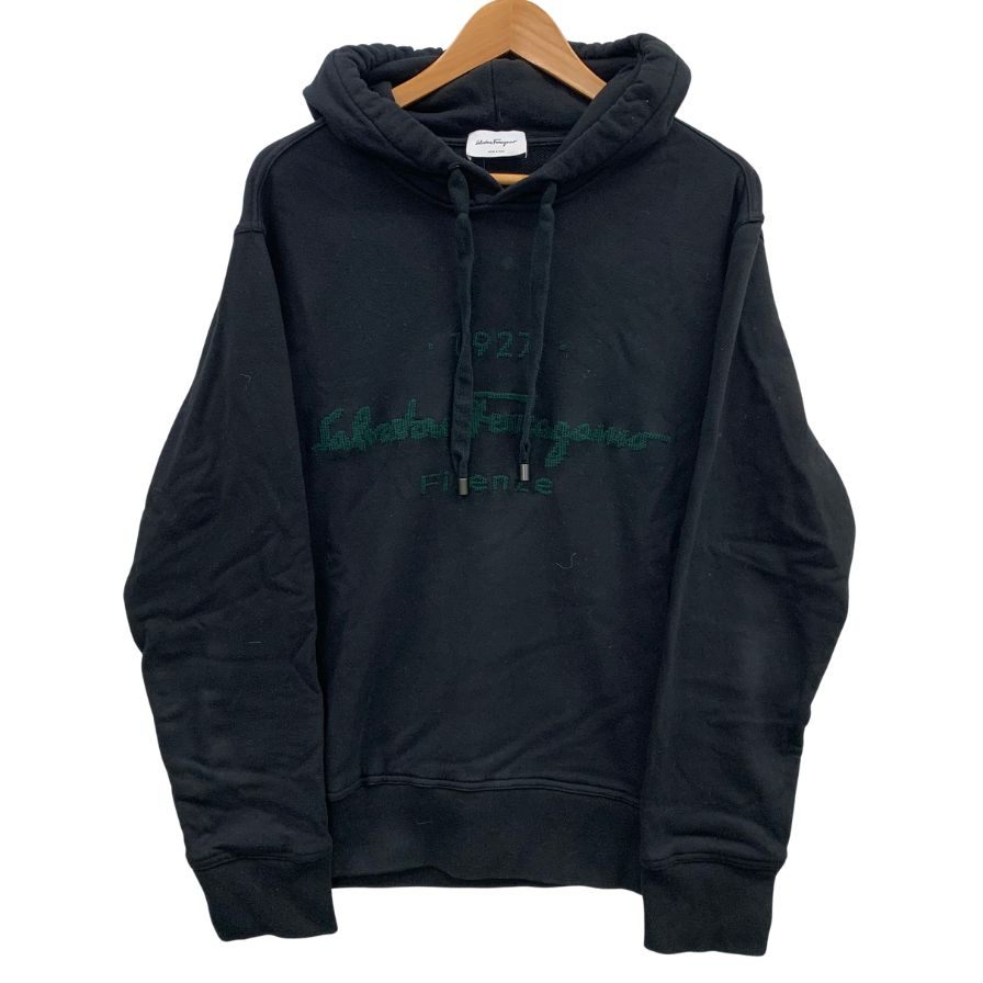 極美品◆サルヴァトーレフェラガモ パーカー ロゴデザイン メンズ サイズL ブラック Salvatore Ferragamo 【AFA1】