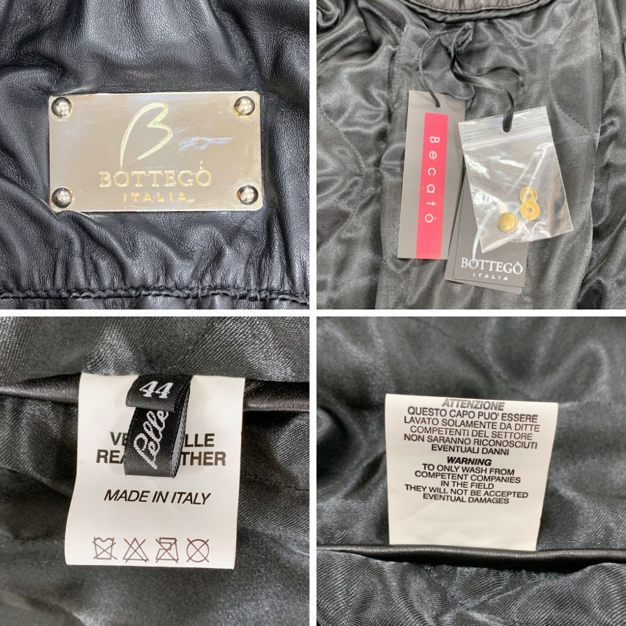 極美品◆ボッテゴ イタリア レザー ブルゾン レディース サイズ44 ブラック Bottego ITALIA 【AFA15】
