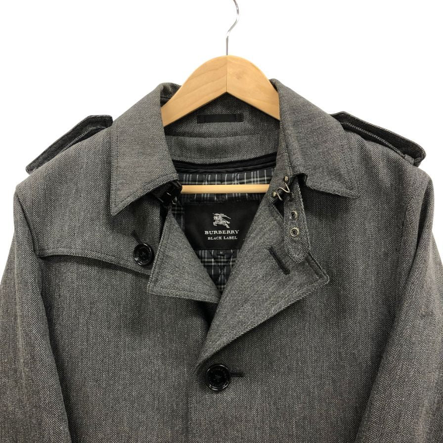 美品◆バーバリー ブラックレーベル トレンチコート ヘリンボーン ライナー付き サイズM メンズ チャコール BURBERRY BLACK LABEL 【AFA4】