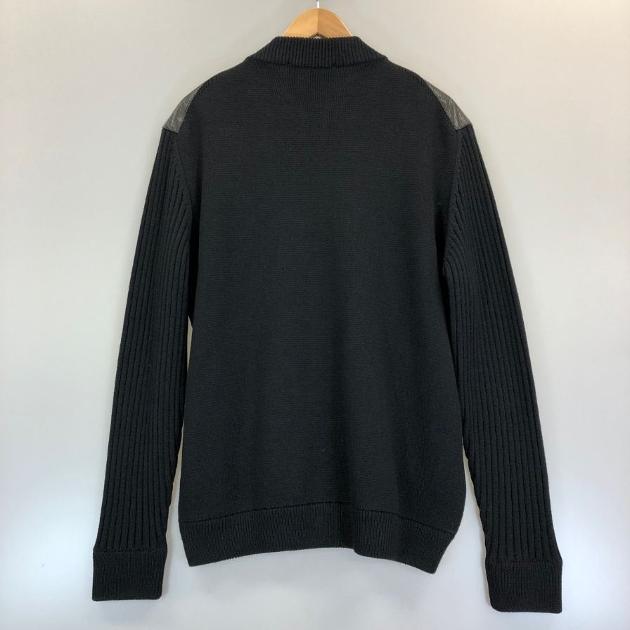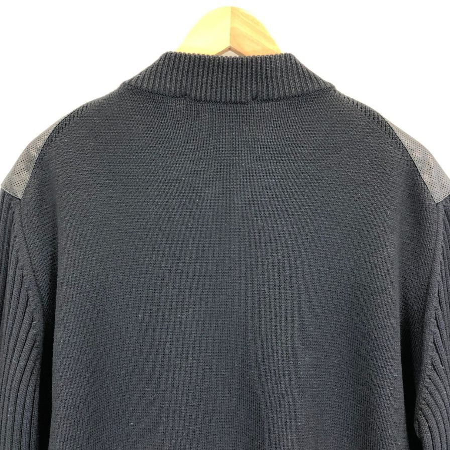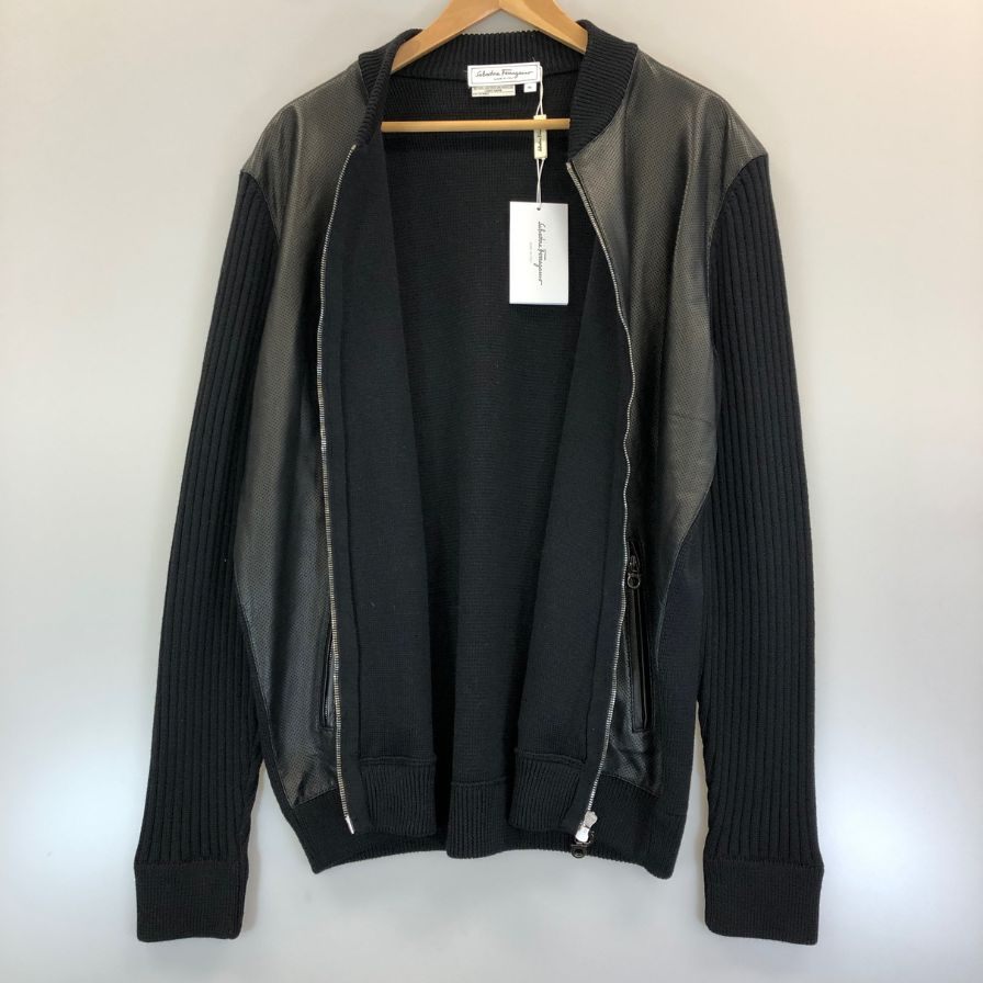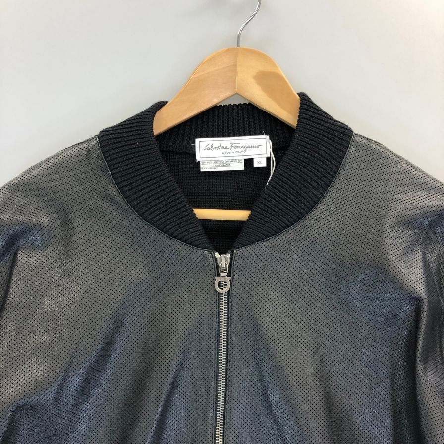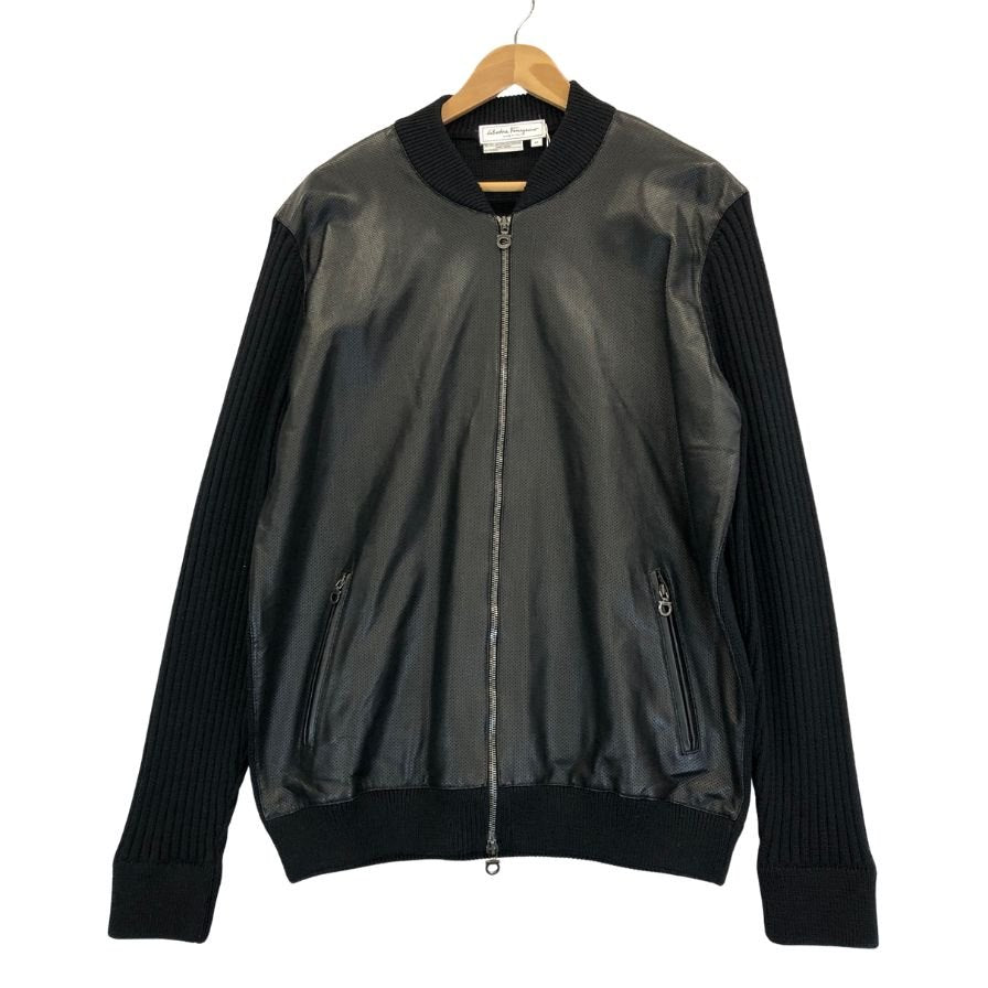 極美品◆サルヴァトーレ フェラガモ レザー×ニット 切替 ブルゾン パンチングレザー サイズXL ブラック Salvatore Ferragamo 【AFB34】