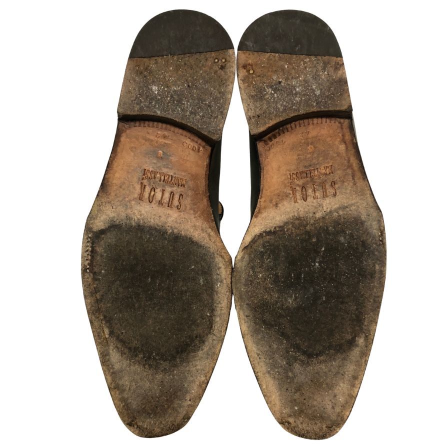 1912年にイタリア・フィレンツェで創業された「ストールマンテラッシ(SUTOR MANTELLASSI)」は、マンテラッシ兄弟が始めた小さな工房からスタートし、100年以上の歴史を持つ名門ブランドです。「SUTOR」はラテン語で「腕利きの靴修理人」を意味し、その名の通り、ハンドメイドの高品質な靴が特徴です。ブルーに彩られたソールの半カラス仕上げや、シャープなシルエットと足入れの良さが魅力で、クラシコシューズのアイコンであるスクエアトゥの元祖とも言われています。― 株式会社ストックラボによるオリジナルテキスト |