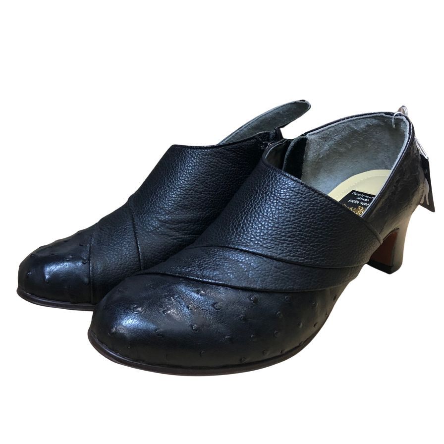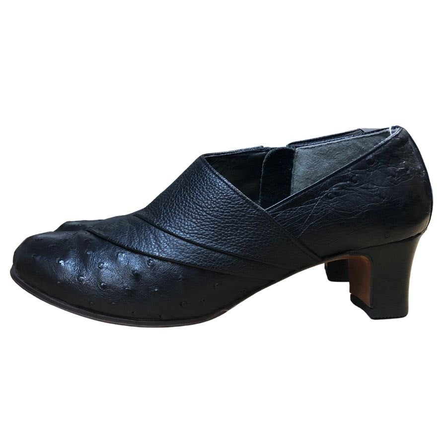 新宿屋 レザーパンプス オーストリッチ 4681-055 ブラック 22.5cm レディース shinjukuya 約22.5cm【7F1】
