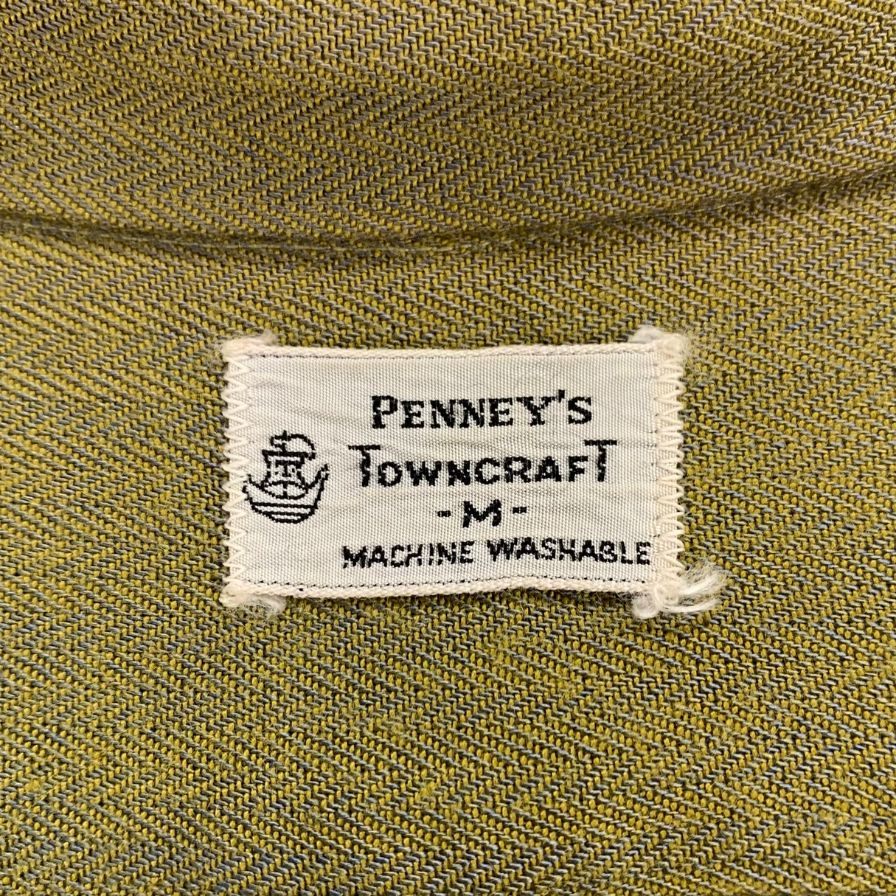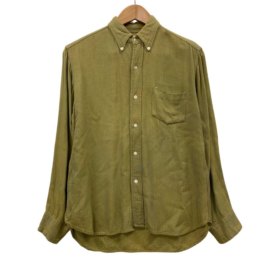 美品◆タウンクラフト 60S レーヨンシャツ 船タグ ボタンダウン カーキ メンズ サイズM TOWNCRAFT 【AFB14】