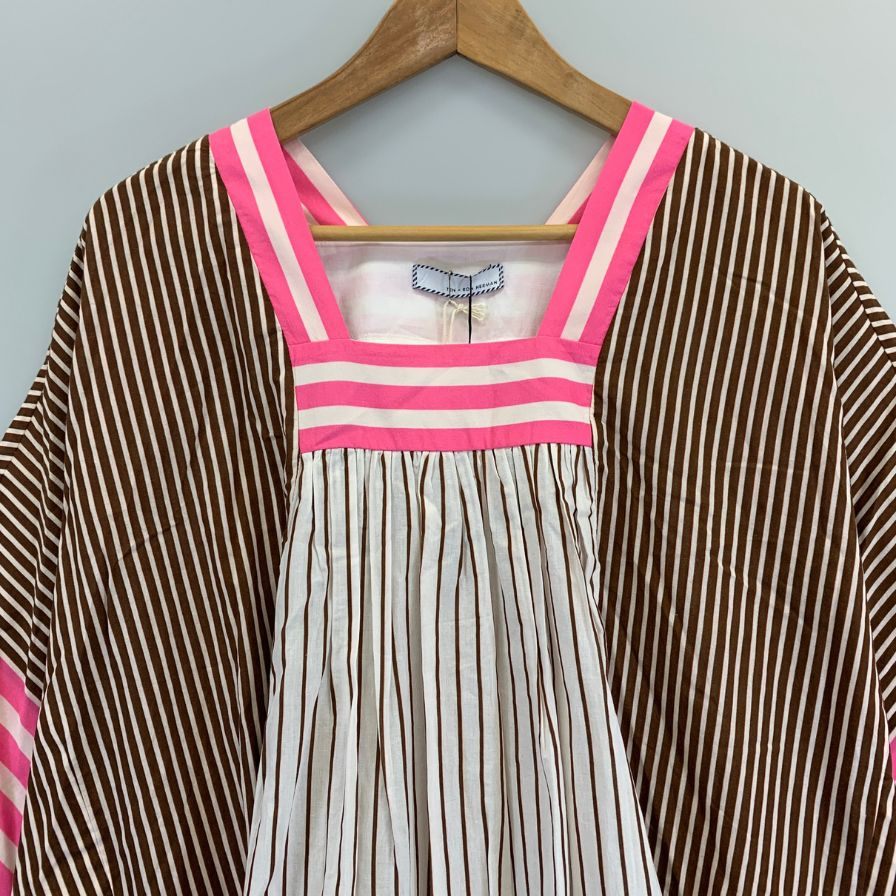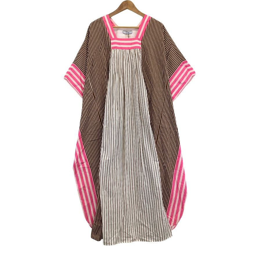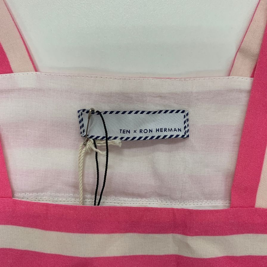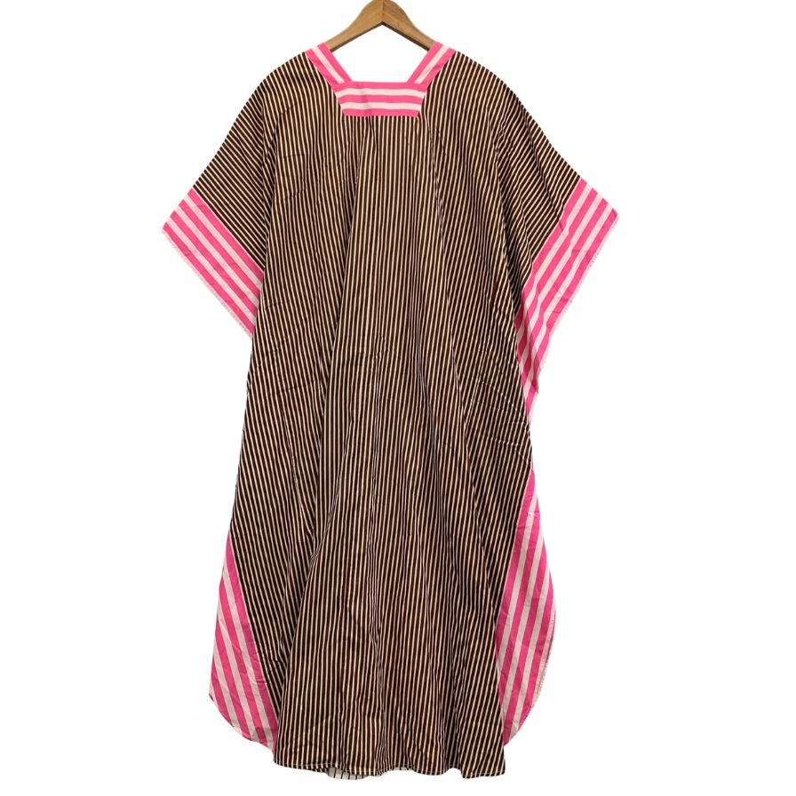 新品同様◆テン×ロンハーマン カフタンワンピース ストライプ レディース サイズ フリー ブラウン系 TEN×Ron Herman 【AFB15】