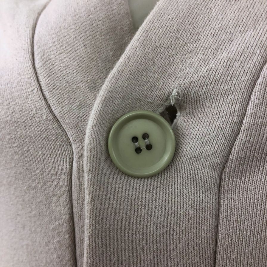 背面肩辺りに汚れ、ボタンホールほつれ、袖口弱スレ、全体的に毛玉が見られます。 |