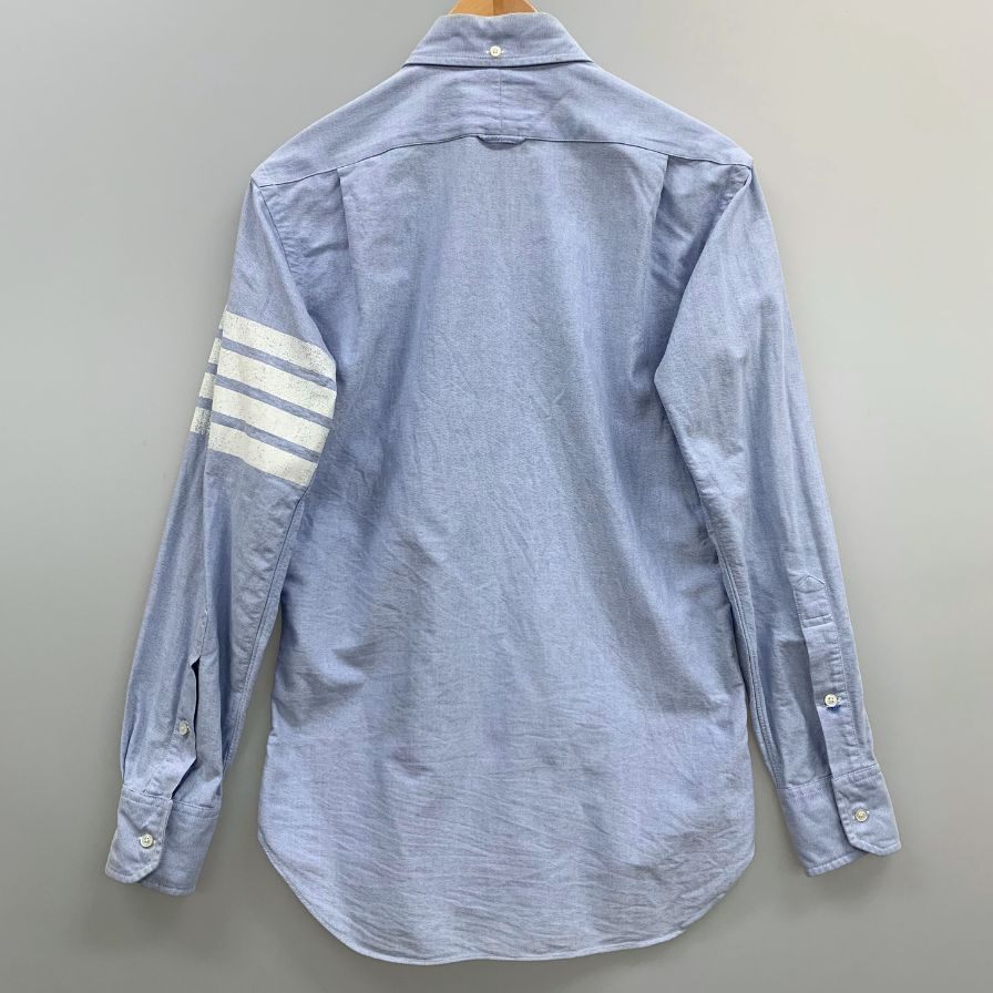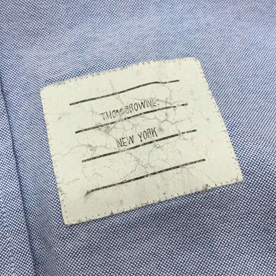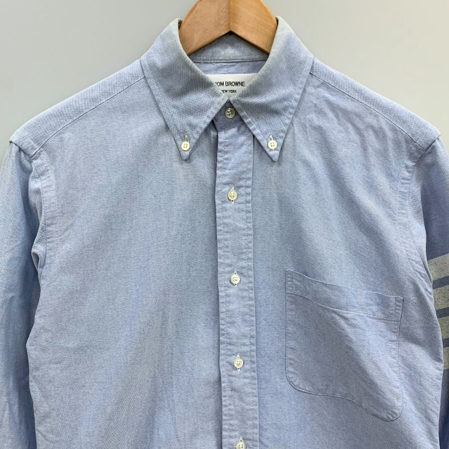 中古◆トムブラウン オックスフォードシャツ 袖プリント ボタンダウン コットン 長袖 L/S ブルー メンズ サイズ1 THOM BROWNE 【AFB9】