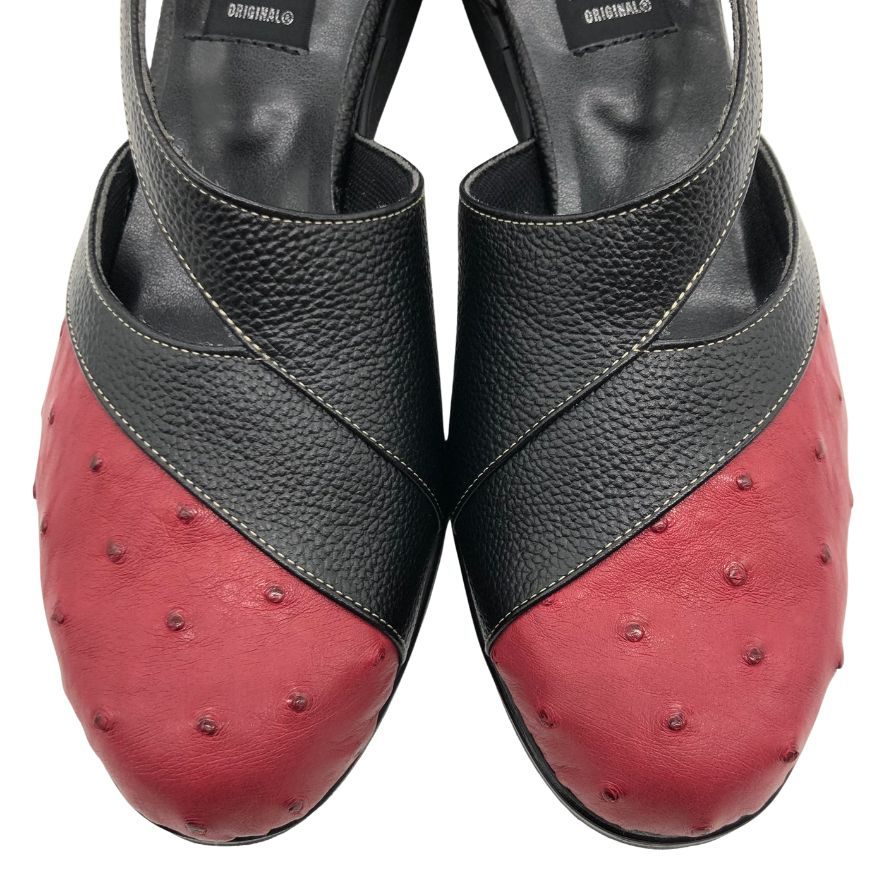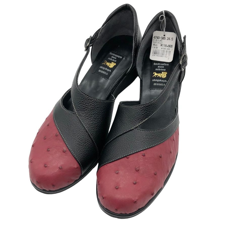 新宿屋 レザーパンプス オーストリッチ 4740-085 カンパリレッド 24.5cm レディース sinjukuya 約24.5cm【7-17】