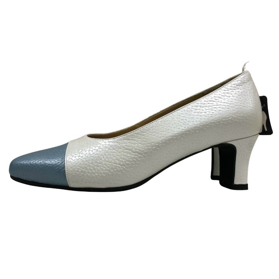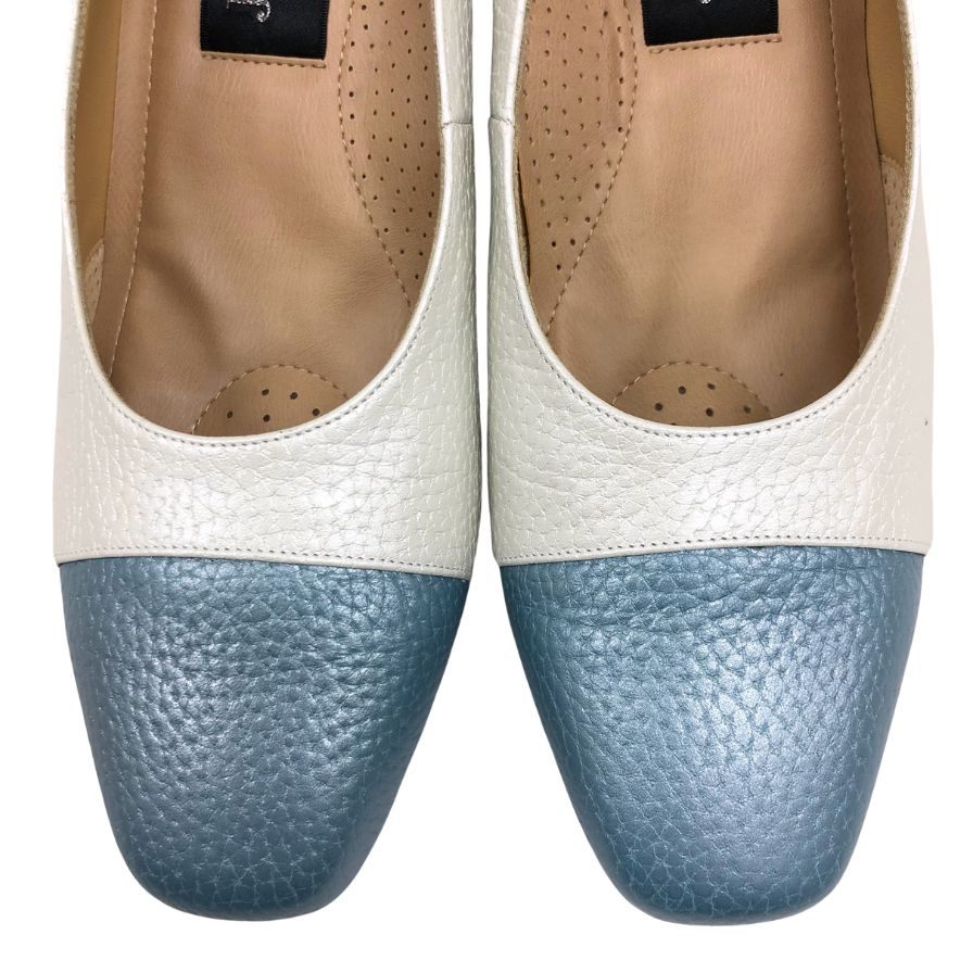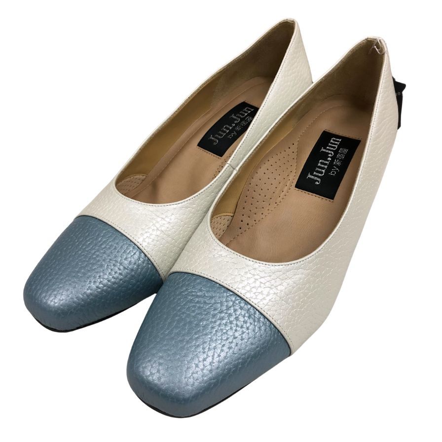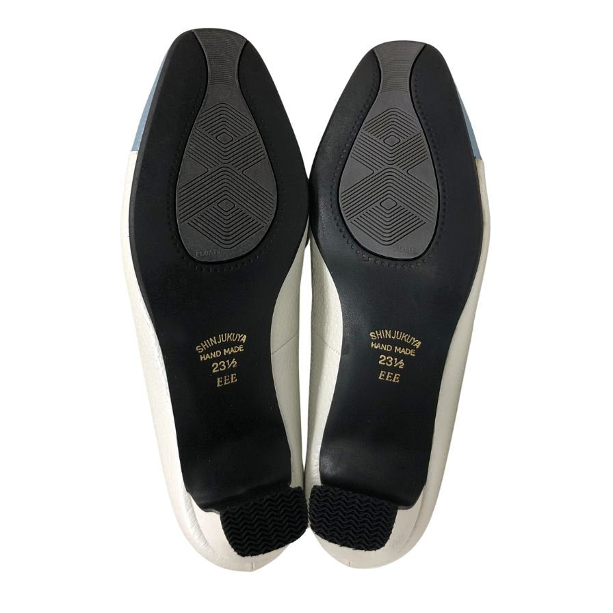 ジュンジュンバイ新宿屋 パンプス ヒール レザー 5400 ホワイト×ブルー サイズ23.5cm レディース Jun.Jun by shinjukuya 約23.5cm【7-13】