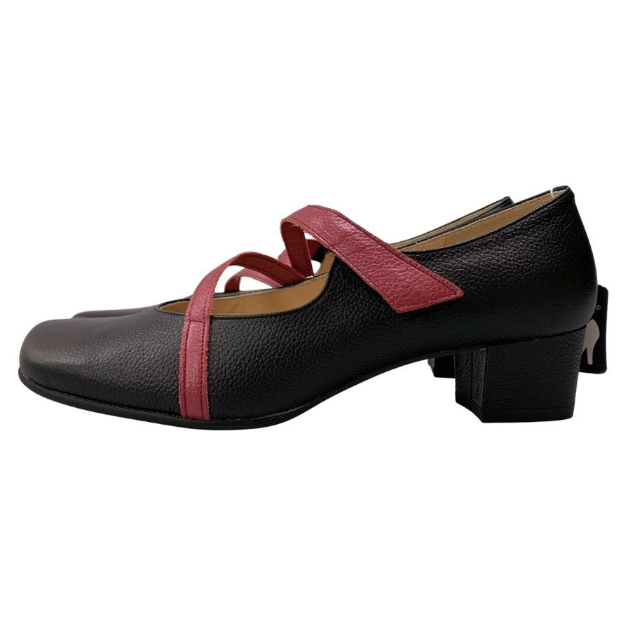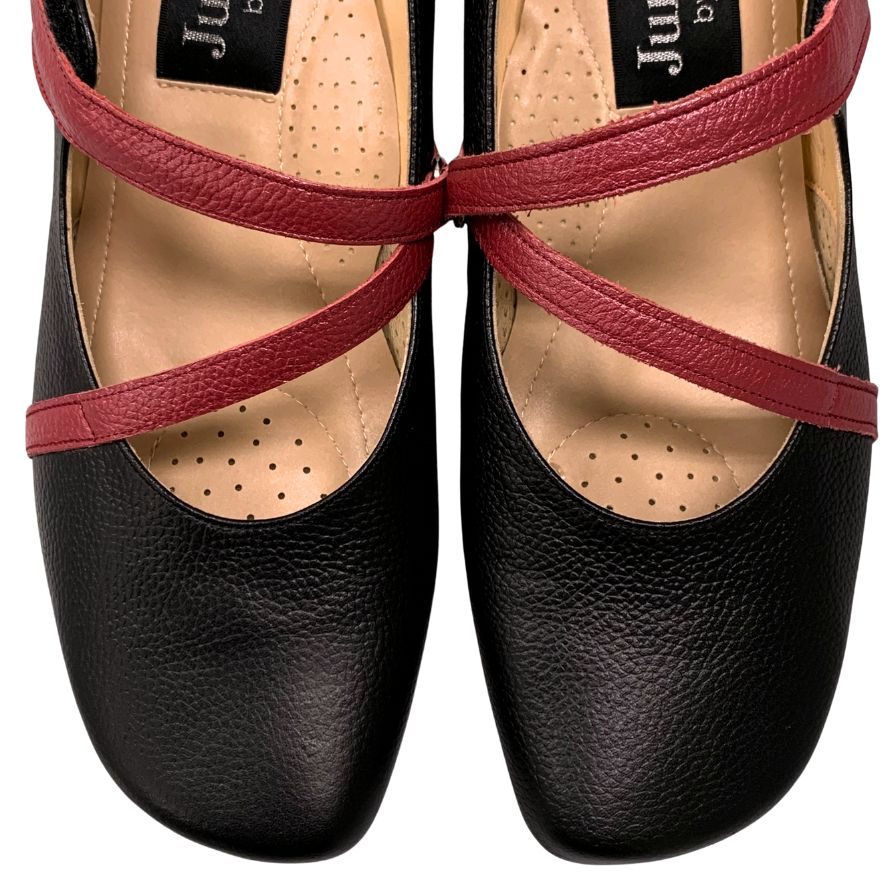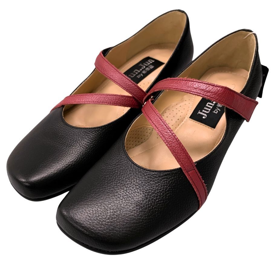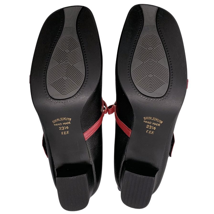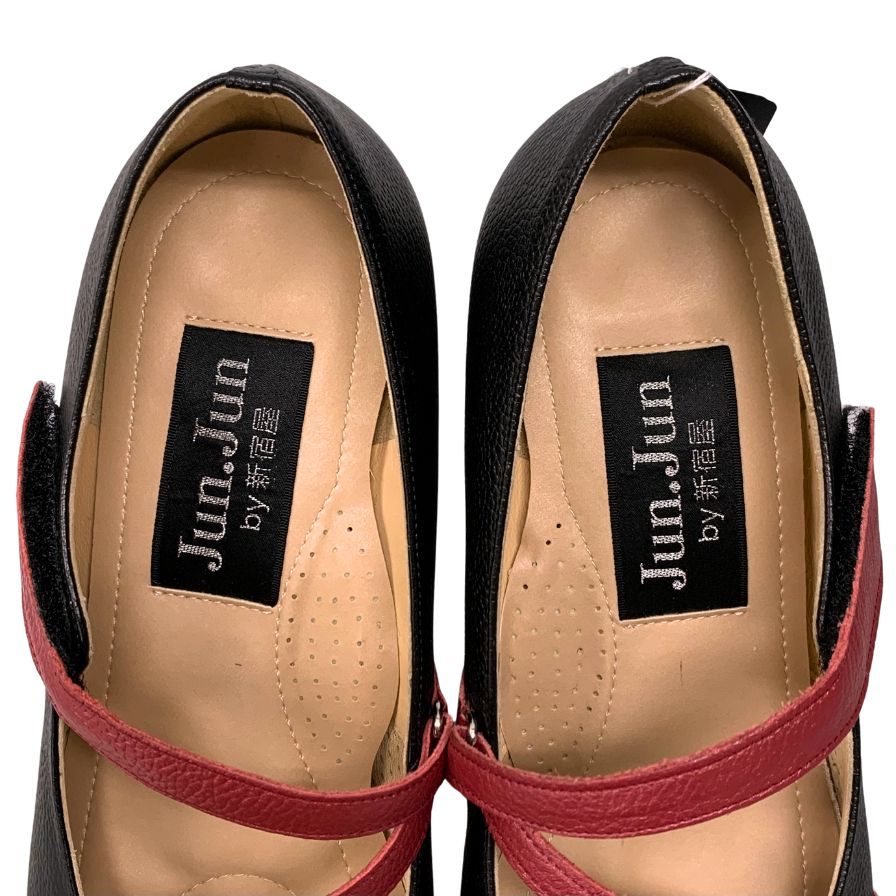 ジュンジュンバイ新宿屋 パンプス レザー 3072 レッド ブラック オデット レディース サイズ23.5 Jun.Jun by shinjukuya 約23.5cm【7-17】