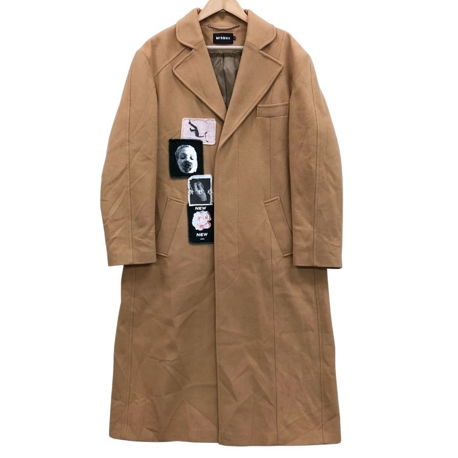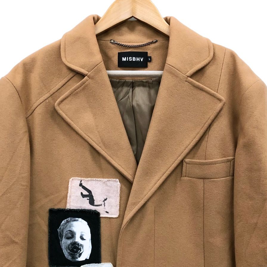 美品◆ミスベイブ チェスターコート ロング丈 ウール パッチ デザイン ワッペン キャメル メンズ サイズL MISBHV 【AFA24】