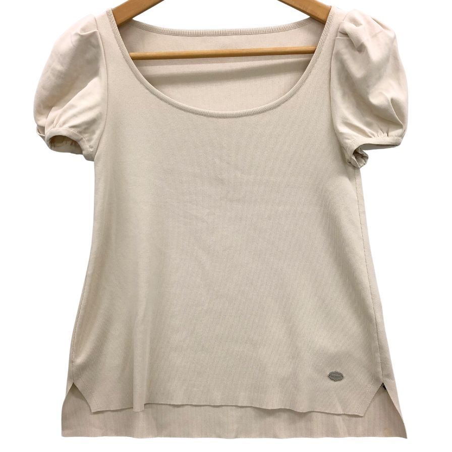 新品同様◆フォクシーニューヨーク 半袖トップス シューフルール 肩パット付 31113 レディース サイズ38 ベージュ FOXEY NEWYORK 【AFB4】